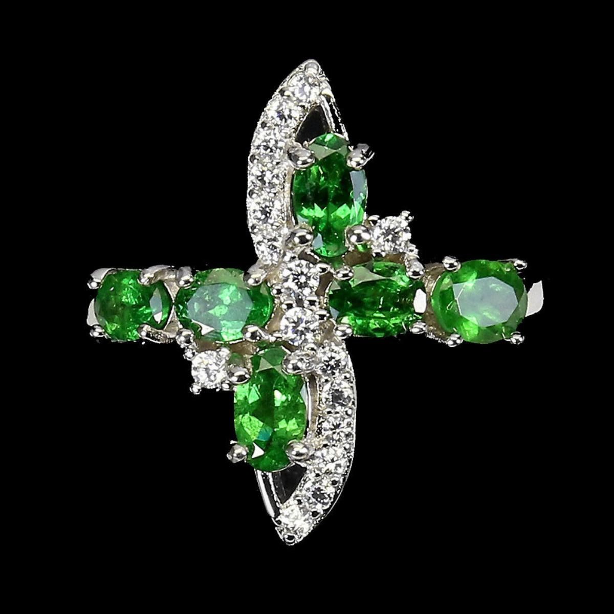 925 STERLING SILVER;PLATE-14K WHITE GOLD;RING SIZE-7(RESIZABLE);MAIN STONE-TSAVORITE GARNET;TOTAL WEIGHT-3.29 GRAM (TOTAL WEIGHT OF SILVER + STONE);DIMENSION-* STONE 4.0 X 3.0 TO 5.0 X 3.0 MM.* RING SIZE 7.0* FACE RING 20.0 X 18.0 MM.;MAIN STONE SHAPE-OVAL; MAIN STONE COLOR- GREEN;CLARITY/GRADE-IF TO VVS;TREATMENT-UNHEATED;ORIGIN-KENYA - AFRICA;HARDNESS-7;