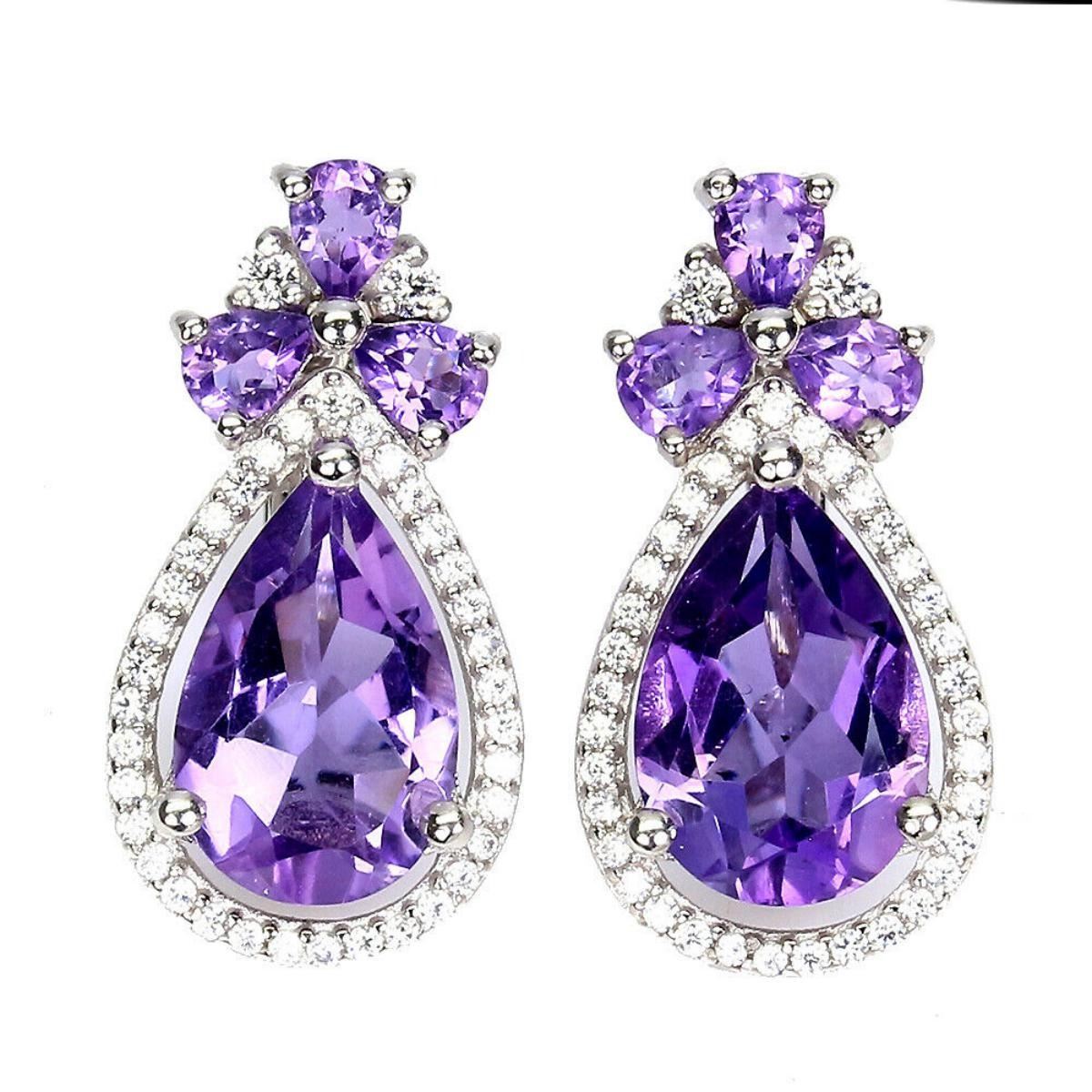 925 STERLING SILVER;PLATE-14K WHITE GOLD;MAIN STONE-AMETHYST;TOTAL WEIGHT-5.99 GRAM (TOTAL WEIGHT OF SILVER + STONE)DIMENSION-* STONE 4.0 X 3.0 TO 12.0 X 8.0 MM.;* FACE EARRINGS- 22.0 X 12.0 MM.;MAIN STONE SHAPE-PEAR CUT;MAIN STONE COLOR- RICH PURPLE;CLARITY/GRADE-IF TO VVS;TREATMENT-UNHEATED;ORIGIN-BRAZIL;HARDNESS-7;