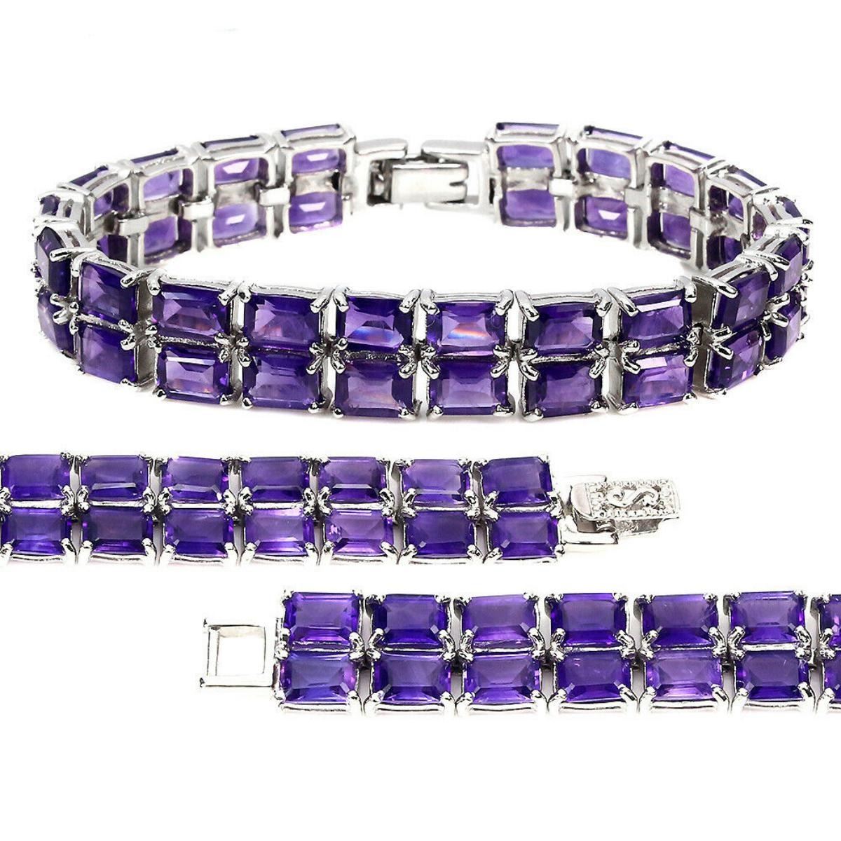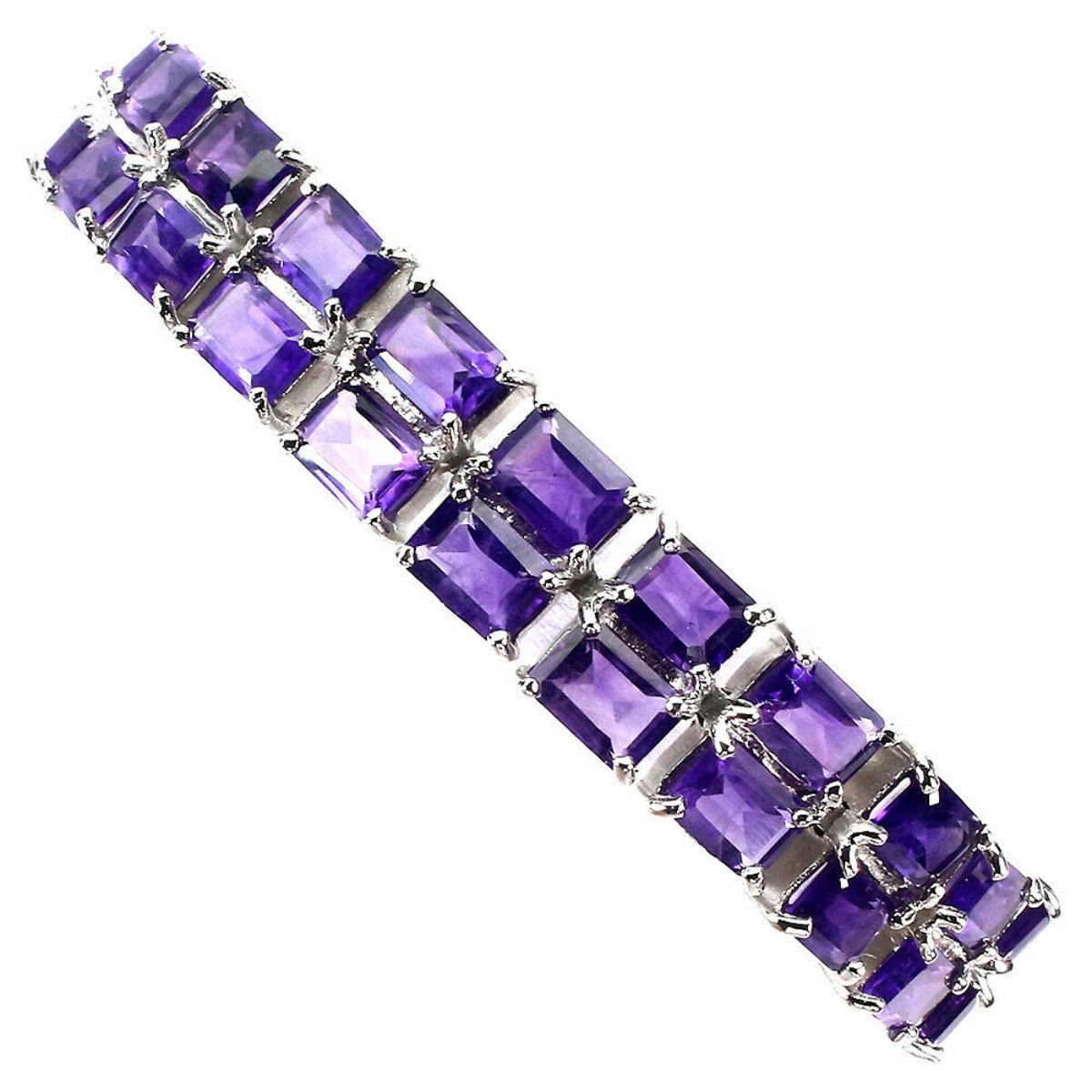 925 STERLING SILVER;PLATE-14K WHITE GOLD;LENGTH (INCHES)-7;MAIN STONE-AMETHYST;TOTAL WEIGHT-29.17 GRAM (TOTAL WEIGHT OF SILVER + STONE);DIMENSION-* STONE 7.0 X 5.0 MM. * TOTAL LENGTH 7.0 INCHES. * FACE BRACELET 165.0 X 12.0 MM.;MAIN STONE SHAPE-OVAL CUT;MAIN STONE COLOR- PURPLE;CLARITY/GRADE-IF TO VVS;TREATMENT-UNHEATED;ORIGIN-URUGUAY;HARDNESS-7;