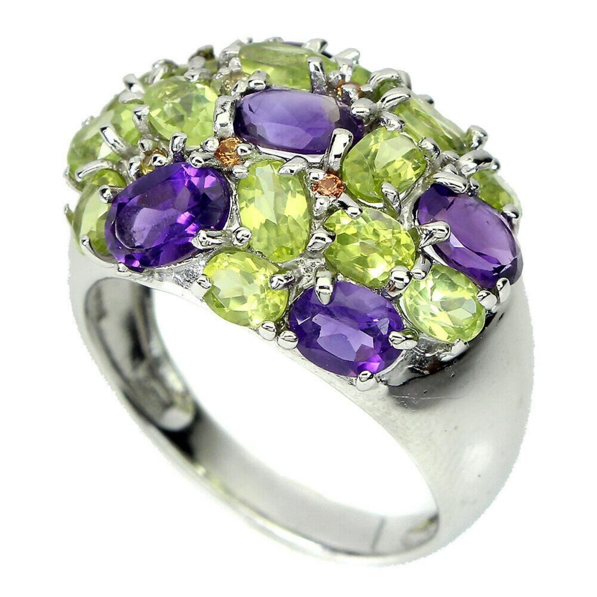 925 STERLING SILVER;PLATE-14K WHITE GOLD;RING SIZE-9(RESIZABLE);MAIN STONE-AMETHYST;OTHER GEMS-PERIDOT, SAPPHIRE DIAMOND CUT;TOTAL WEIGHT-5.55 GRAM (TOTAL WEIGHT OF SILVER + STONE);DIMENSION-* STONE 1.5 TO 6.0 X 4.0 MM. * RING SIZE 9.0 * FACE RING 22.0 X 16.0 MM.;MAIN STONE SHAPE-OVAL CUT;MAIN STONE COLOR- PURPLE;CLARITY/GRADE-IF;TREATMENT-UNHEATED;ORIGIN-URUGUAY;HARDNESS- 7;