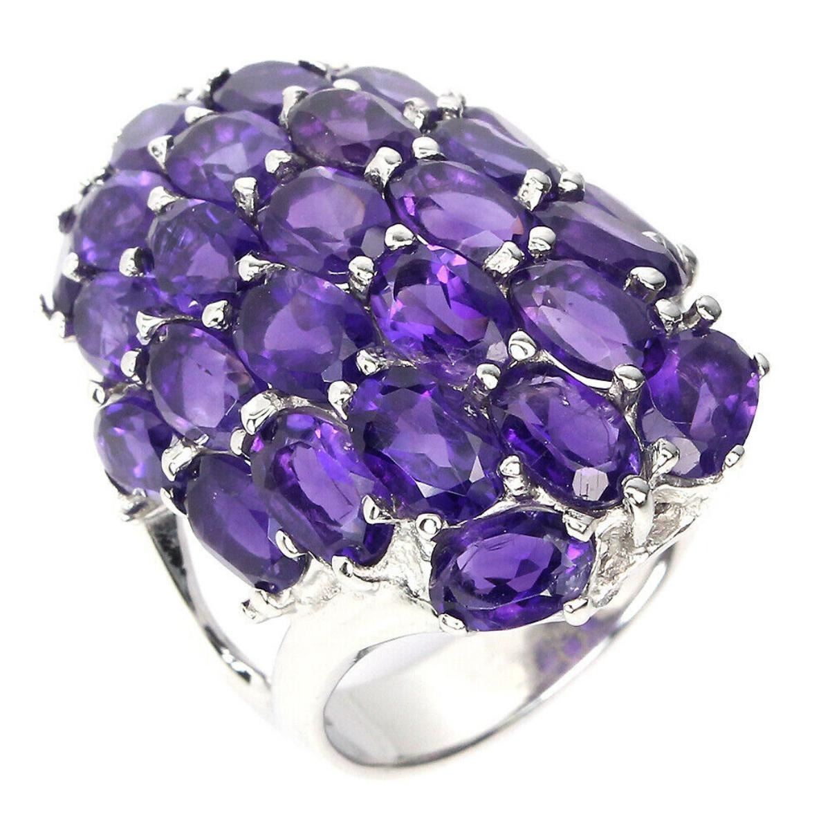 925 STERLING SILVER;PLATE-14K WHITE GOLD;RING SIZE-8(RESIZABLE);MAIN STONE-AMETHYST;TOTAL WEIGHT-11.3 GRAM (TOTAL WEIGHT OF SILVER + STONE);DIMENSION-* STONE 6.0 X 4.0 MM.* RING SIZE 8.0* FACE RING 29.0 X 19.0 MM.;MAIN STONE SHAPE-OVAL ;MAIN STONE COLOR- PURPLE;CLARITY/GRADE-IF TO VVS;TREATMENT-UNHEATED;ORIGIN-URUGUAY;HARDNESS-7;