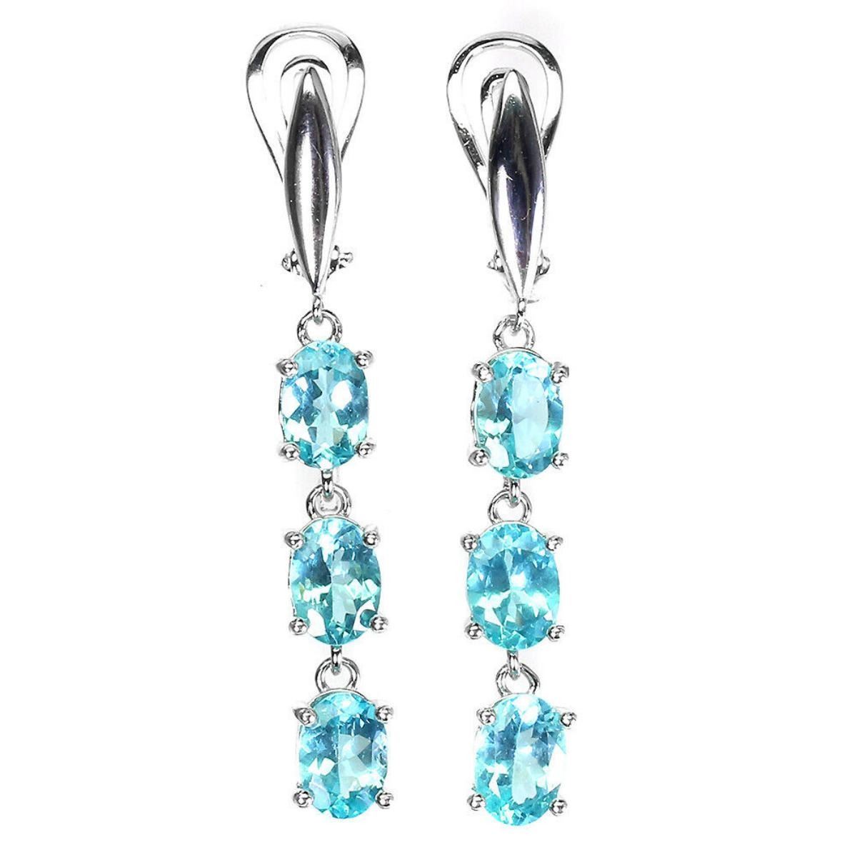 925 STERLING SILVER;PLATE-14K WHITE GOLD;MAIN STONE-APATITE;TOTAL WEIGHT-5.26 GRAM (TOTAL WEIGHT OF SILVER + STONE);DIMENSION-* STONE 7.0 X 5.0 MM.* FACE EARRINGS 40.0 X 6.0 MM.;MAIN STONE SHAPE-OVAL; MAIN STONE COLOR- NEON BLUE;CLARITY/GRADE-IF TO VVS;TREATMENT-UNHEATED;ORIGIN-BRAZIL;HARDNESS-5;