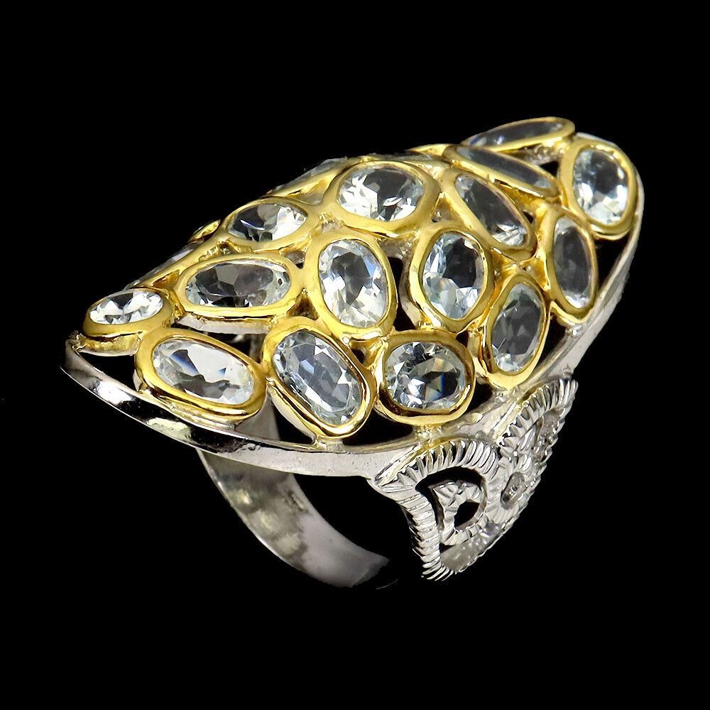 925 STERLING SILVER;PLATE-2-TONE WHITE & YELLOW 14K GOLD;RING SIZE(Resizeable)8.5;MAIN STONE-AQUAMARINE;TOTAL WEIGHT-10.12 GRAM (TOTAL WEIGHT OF SILVER + STONE)DIMENSION-* STONE 6.0 X 4.0 TO 7.0 X 5.0 MM.;* FACE RING- 43.0 X 22.0 MM.;MAIN STONE SHAPE-OVAL CUT;MAIN STONE COLOR-Aqua;CLARITY/GRADE-IF TO VVS;TREATMENT-UNHEATED;ORIGIN-BRAZIL;HARDNESS-7;