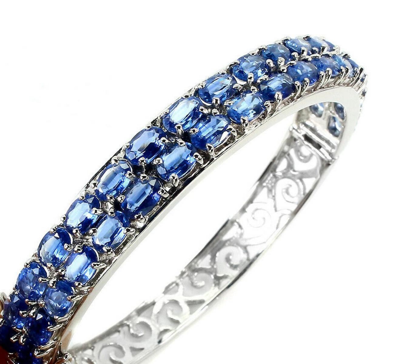 925 STERLING SILVER;PLATE-14K WHITE GOLD;LENGTH (INCHES)2.3;MAIN STONE-KYANITE;TOTAL WEIGHT-30.67 GRAM (TOTAL WEIGHT OF SILVER + STONE)DIMENSION-* STONE 6.0 X 4.0 MM. * DIAMETER 2.3 X 2.3 INCHES. * FACE BANGLE- 70.0 X 10.0 MM.;MAIN STONE SHAPE-OVAL CUT;MAIN STONE COLOR- BLUE;CLARITY/GRADE-IF TO VVS;TREATMENT-UNHEATED;ORIGIN-NEPAL;HARDNESS-5.0 - 7.0;