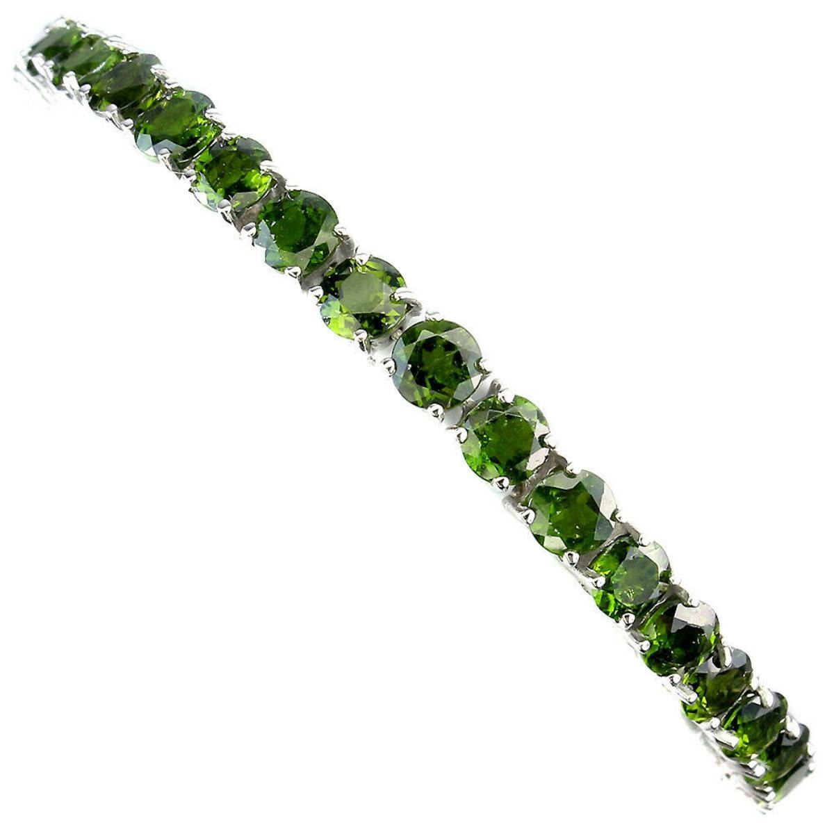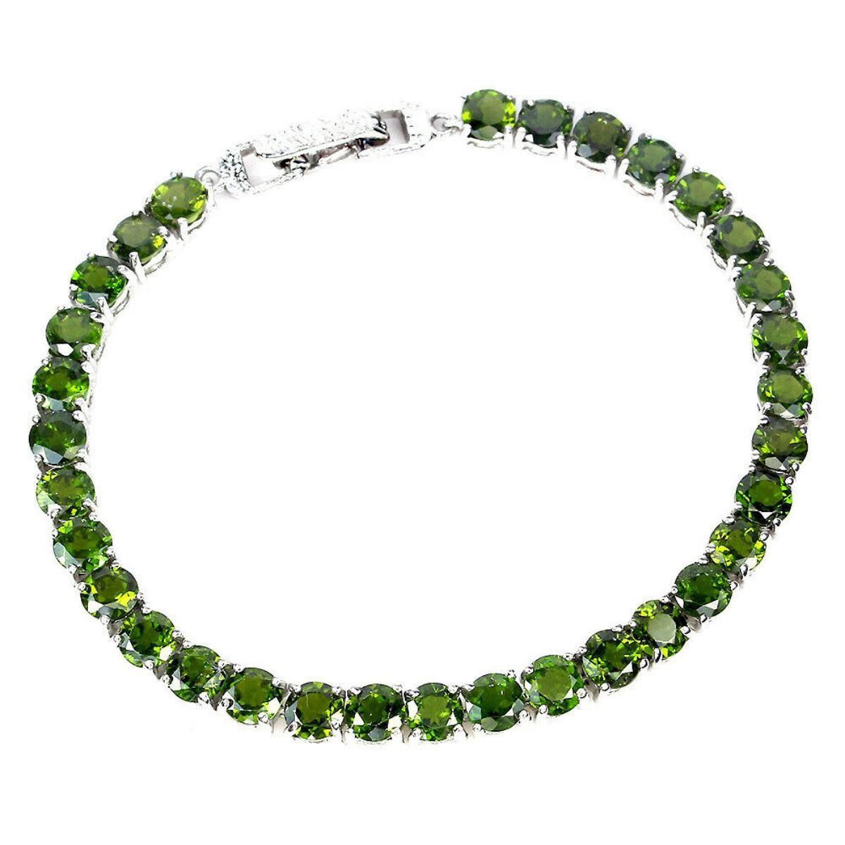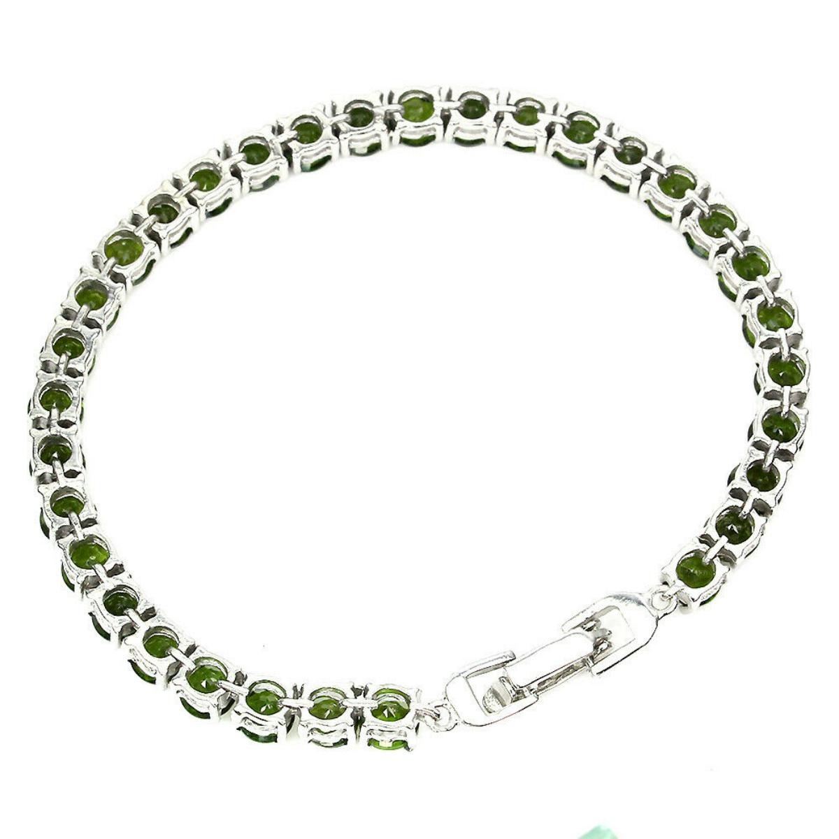 925 STERLING SILVER;PLATE-14K WHITE GOLD;LENGTH (INCHES)7.5;MAIN STONE-CHROME DIOPSIDE;TOTAL WEIGHT-13.89 GRAM (TOTAL WEIGHT OF SILVER + STONE)DIMENSION-* STONE 5.0 MM. * LENGTH 7.5 INCHES.* FACE BRACELET 190.0 X 5.0 MM.;MAIN STONE SHAPE-ROUND CUT;MAIN STONE COLOR- GREEN;CLARITY/GRADE-IF TO VVS;TREATMENT-UNHEATED;ORIGIN-RUSSIA;HARDNESS-5.0 - 5.5;