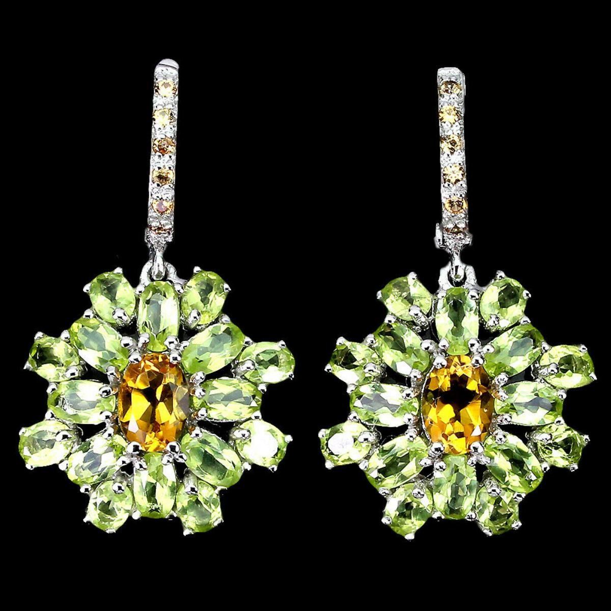 925 STERLING SILVER;PLATE-14K WHITE GOLD;MAIN STONE-CITRINE;OTHER GEMS-PERIDOT, SAPPHIRE DIAMOND CUT;TOTAL WEIGHT-6.48 GRAM (TOTAL WEIGHT OF SILVER + STONE);DIMENSION-* STONE 1.5 TO 7.0 X 5.0 MM.* FACE EARRINGS 33.0 X 20.0 MM.;MAIN STONE SHAPE-OVAL CUT;MAIN STONE COLOR- YELLOW;CLARITY/GRADE-IF;TREATMENT-UNHEATED;ORIGIN-BRAZIL;HARDNESS-7;