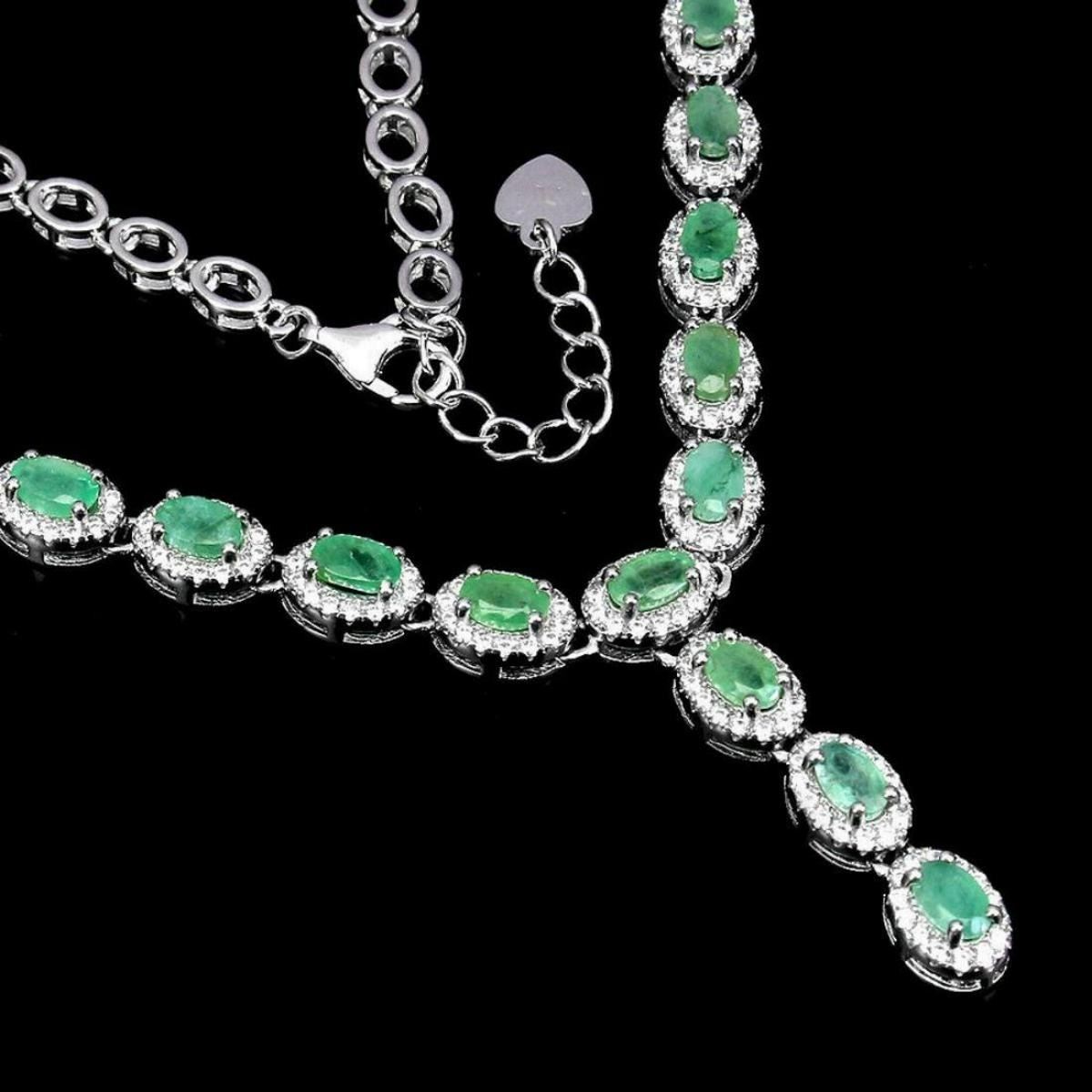 925 STERLING SILVER;PLATE-14K WHITE GOLD PLATED;LENGTH- (INCHES)17;MAIN STONE-EMERALD;TOTAL WEIGHT-19.63 GRAM (TOTAL WEIGHT OF SILVER + STONE)DIMENSION-* STONE 5.0 X 3.0 MM. * TOTAL LENGTH 17.0 INCHES. * .;MAIN STONE SHAPE-OVAL CUT;MAIN STONE COLOR- GREEN;TREATMENT-UNHEATED/untreated;ORIGIN-Colombia;HARDNESS-7.5 - 8.0