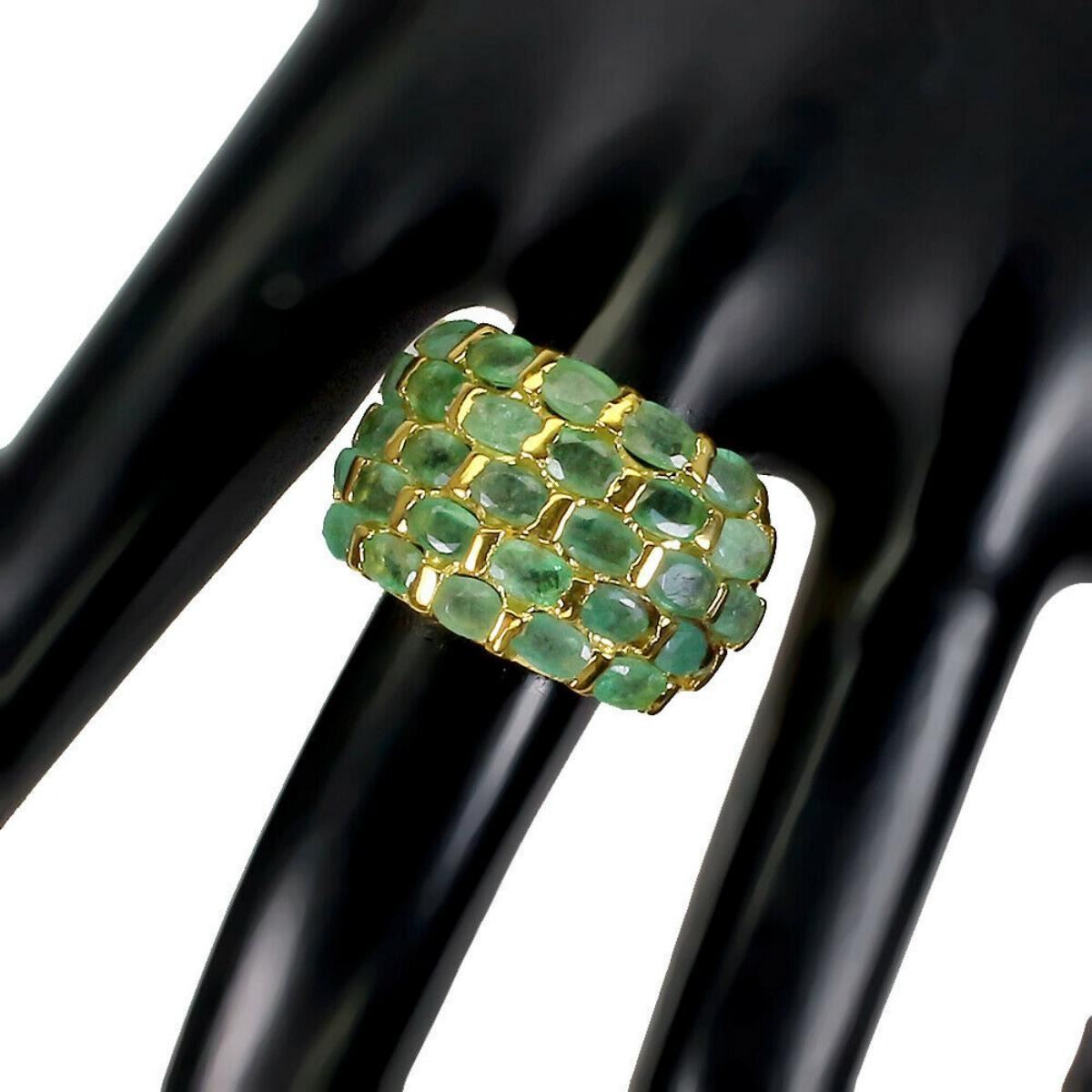 925 STERLING SILVER;PLATE-14K YELLOW GOLD;RING SIZE-9(RESIZABLE);MAIN STONE-EMERALD;TOTAL WEIGHT-10.86 GRAM (TOTAL WEIGHT OF SILVER + STONE);DIMENSION-* STONE 5.0 X 3.0 MM. * RING SIZE 9.0 * FACE RING 25.0 X 17.0 MM.;MAIN STONE SHAPE-OVAL CUT;MAIN STONE COLOR- GREEN;TREATMENT- UNHEATED ; ORIGIN-Colombian;;HARDNESS-7;