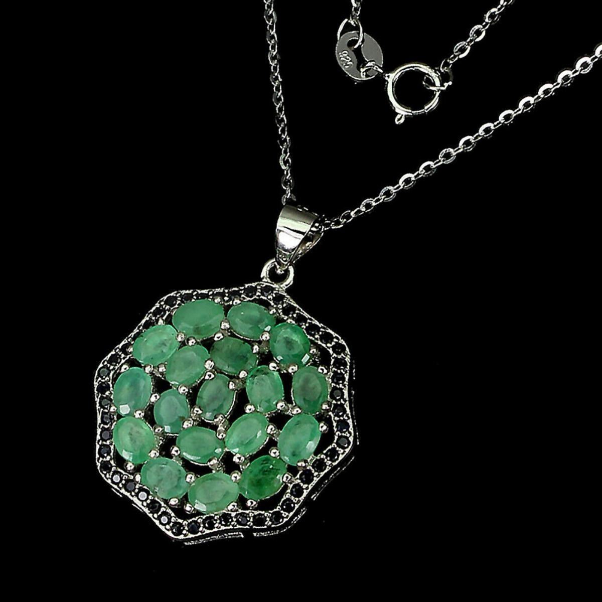 925 STERLING SILVER;PLATE-14K WHITE GOLD;LENGTH (INCHES)- 18;MAIN STONE-EMERALD;OTHER GEMS-SAPPHIRE;TOTAL WEIGHT-4.64 GRAM (TOTAL WEIGHT OF SILVER + STONE);DIMENSION-* STONE 1.0 TO 4.0 X 3.0 MM. * TOTAL LENGTH 18.0 INCHES. * STONES PART LENGTH 30.0 X 23.0 MM.;MAIN STONE SHAPE-OVAL;MAIN STONE COLOR-GREEN;TREATMENT-UNHEATED;ORIGIN-BRAZIL;