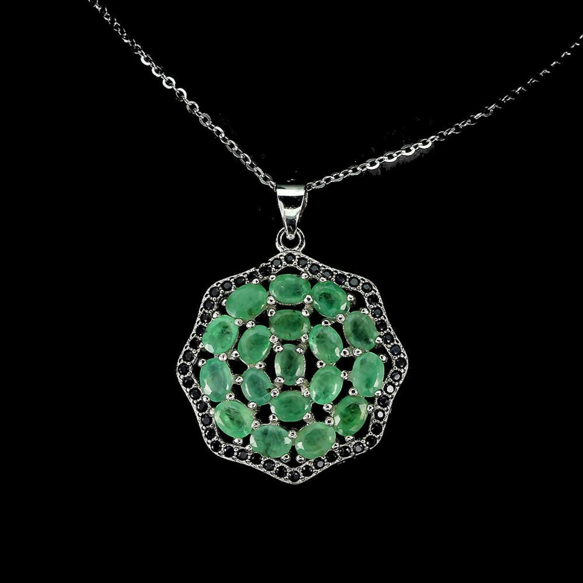 925 STERLING SILVER;PLATE-14K WHITE GOLD;LENGTH (INCHES)- 18;MAIN STONE-EMERALD;OTHER GEMS-SAPPHIRE;TOTAL WEIGHT-4.64 GRAM (TOTAL WEIGHT OF SILVER + STONE);DIMENSION-* STONE 1.0 TO 4.0 X 3.0 MM. * TOTAL LENGTH 18.0 INCHES. * STONES PART LENGTH 30.0 X 23.0 MM.;MAIN STONE SHAPE-OVAL;MAIN STONE COLOR-GREEN;TREATMENT-UNHEATED;ORIGIN-BRAZIL;