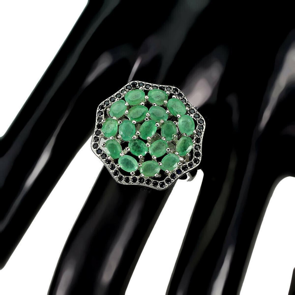 925 STERLING SILVER;PLATE-14K WHITE GOLD;RING SIZE-8(RESIZABLE);MAIN STONE-EMERALD;OTHER GEMS-SAPPHIRE;TOTAL WEIGHT-4.91 GRAM (TOTAL WEIGHT OF SILVER + STONE);DIMENSION-* STONE 1.0 TO 4.0 X 3.0 MM. * RING SIZE 8.0 * FACE RING 23.0 X 22.0 MM.;MAIN STONE SHAPE-OVAL; MAIN STONE COLOR-GREEN;TREATMENT-UNHEATED;ORIGIN-BRAZIL;