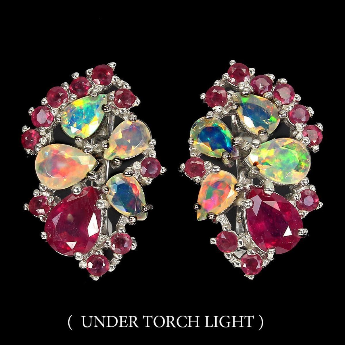 925 STERLING SILVER;PLATE-14K WHITE GOLD;MAIN STONE-white OPAL;OTHER GEMS-RUBY;TOTAL WEIGHT-7.7 GRAM (TOTAL WEIGHT OF SILVER + STONE)DIMENSION-* STONE 2.5 TO 8.0 X 6.0 MM.;* FACE EARRINGS- 25.0 X 16.0 MM.;MAIN STONE SHAPE-PEAR CUT;MAIN STONE COLOR-RAINBOW FULL FLASH;TREATMENT-UNHEATED;ORIGIN-ETHIOPIA;