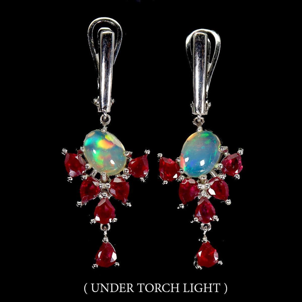925 STERLING SILVER;PLATE-14K WHITE GOLD;MAIN STONE-FIRE OPAL;OTHER GEMS--RUBY;TOTAL WEIGHT-8.16 GRAM (TOTAL WEIGHT OF SILVER + STONE)DIMENSION-* STONE 5.0 X 4.0 TO 10.0 X 8.0 MM.;* FACE EARRINGS- 43.0 X 16.0 MM.;MAIN STONE SHAPE-OVAL CUT;MAIN STONE COLOR-RAINBOW FULL FLASH;TREATMENT-UNHEATED;ORIGIN-ETHIOPIA;