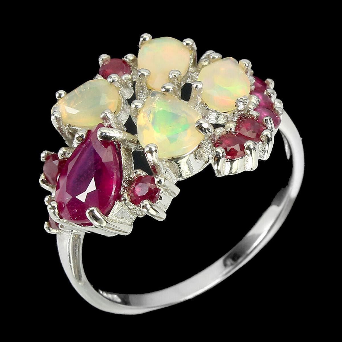 925 STERLING SILVER;PLATE-14K WHITE GOLD;RING SIZE/Resizeable-9.5;MAIN STONE-FIRE OPAL;OTHER GEMS-RUBY;TOTAL WEIGHT-4 GRAM (TOTAL WEIGHT OF SILVER + STONE)DIMENSION-* STONE 2.5 TO 8.0 X 6.0 MM.;* FACE RING- 22.0 X 16.0 MM.;MAIN STONE SHAPE-PEAR CUT;MAIN STONE COL-OR-RAINBOW FULL FLASH;CLARITY/GRADE-IF;ORIGIN-ETHIOPIA-;
