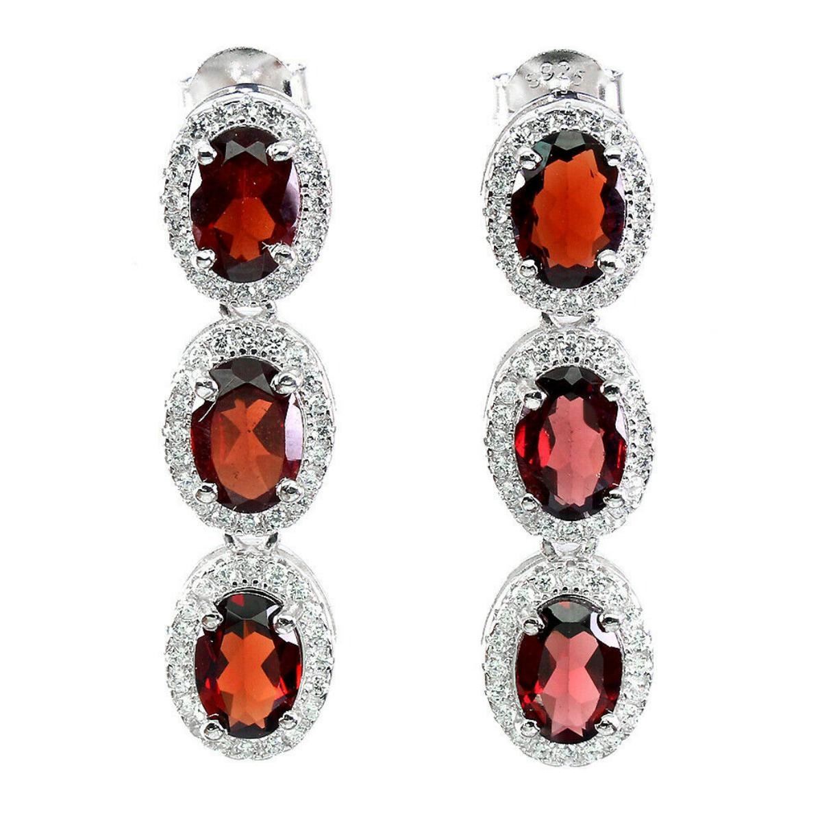 925 STERLING SILVER;PLATE-14K WHITE GOLD;MAIN STONE-MOZAMBIQUE GARNET;TOTAL WEIGHT-4.68 GRAM (TOTAL WEIGHT OF SILVER + STONE);DIMENSION-* STONE 7.0 X 5.0 MM. * FACE EARRINGS 30.0 X 8.0 MM.;MAIN STONE SHAPE-OVAL CUT;MAIN STONE COLOR-REDDISH;CLARITY/GRADE-IF;TREATMENT-UNHEATED;ORIGIN-AFRICA;HARDNESS-7;