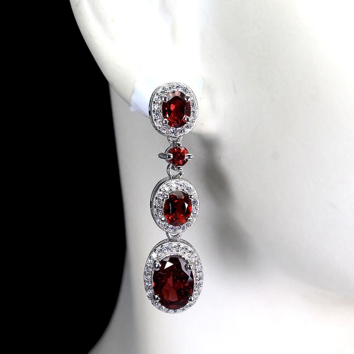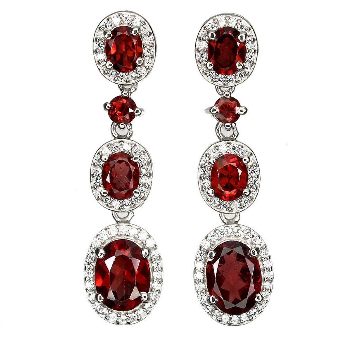 925 STERLING SILVER;PLATE-14K WHITE GOLD;MAIN STONE-MOZAMBIQUE GARNET;OTHER GEMS-WHITE TOPAZ;TOTAL WEIGHT-6.08 GRAM (TOTAL WEIGHT OF SILVER + STONE);DIMENSION-* STONE 2.5 TO 8.0 X 6.0 MM.* FACE EARRINGS 32.0 X 8.0 MM.;MAIN STONE SHAPE-OVAL CUT;MAIN STONE COLOR-REDDISH;CLARITY/GRADE-IF;TREATMENT-UNHEATED;ORIGIN-AFRICA;