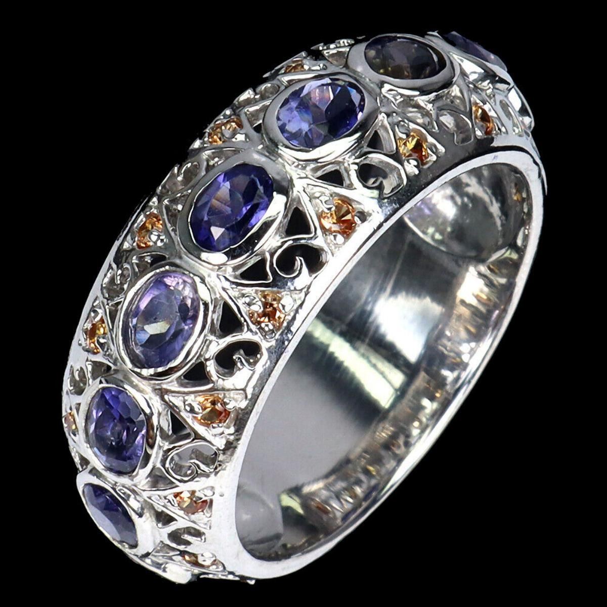 925 STERLING SILVER;PLATE-14K WHITE GOLD;RING SIZE/resizable-9;MAIN STONE-IOLITE;OTHER GEMS-SAPPHIRE;TOTAL WEIGHT-6.29 GRAM (TOTAL WEIGHT OF SILVER + STONE)DIMENSION-* STONE 1.5 TO 4.0 X 3.0 MM. * RING SIZE 9.0 * FACE RING- 25.0 X 9.0 MM.;MAIN STONE SHAPE-OVAL CUT;MAIN STONE COLOR-- BLUE VIOLET;CLARITY/GRADE-IF TO VVS;TREATMENT-UNHEATED;ORIGIN-AFRICA;HARDNESS-7.0 - 7.5;