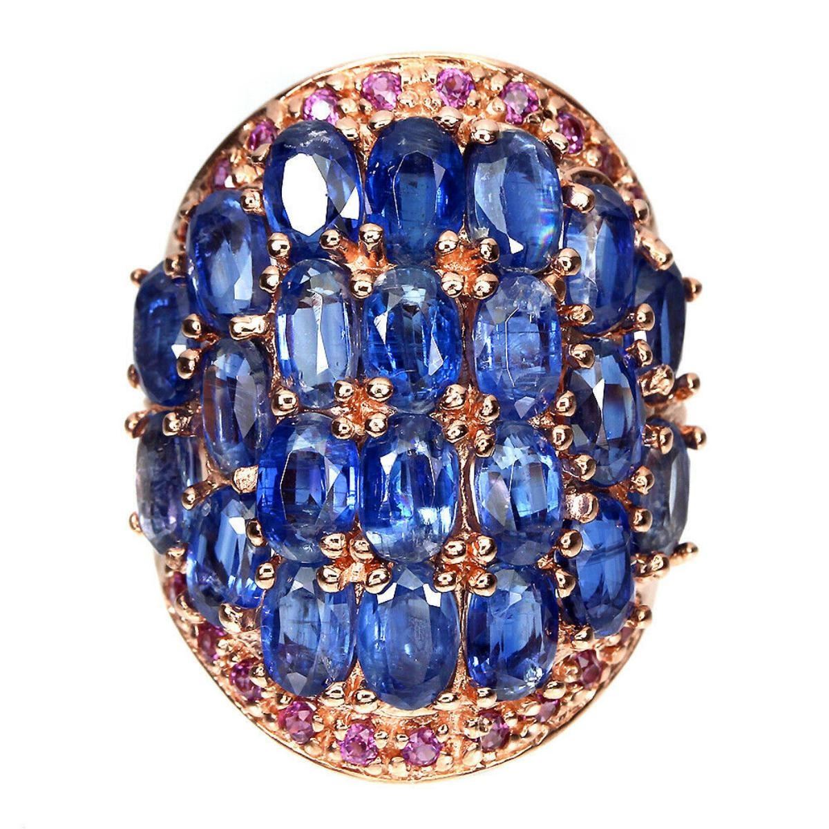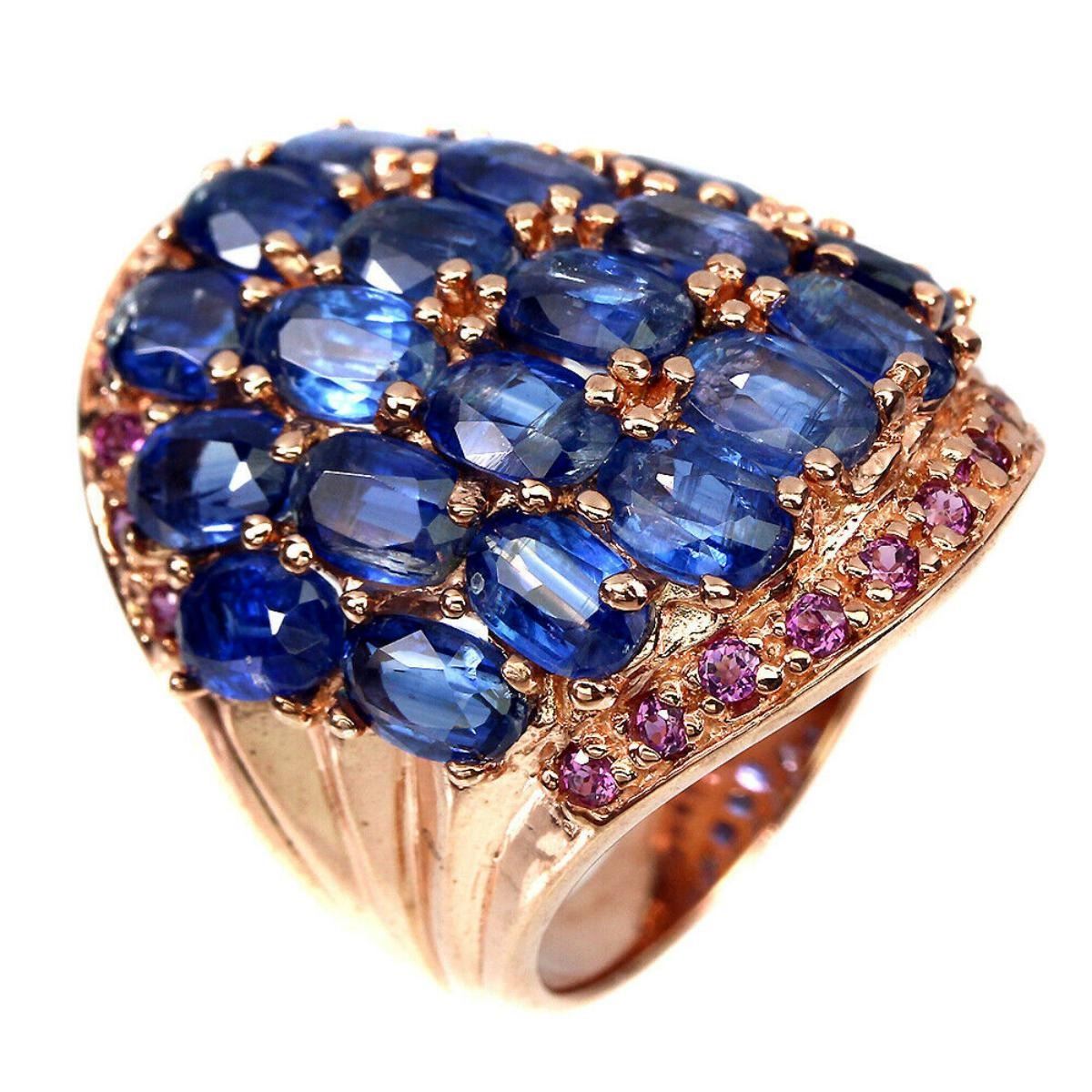 925 STERLING SILVER;PLATE-14K ROSE GOLD;RING SIZE-8 (Resizable);MAIN STONE-KYANITE;OTHER GEMS-AMETHYST;TOTAL WEIGHT-16 GRAM (TOTAL WEIGHT OF SILVER + STONE);DIMENSION-* STONE 2.0 TO 6.0 X 4.0 MM. * RING SIZE 8.0 * FACE RING 30.0 X 24.0 MM.;MAIN STONE SHAPE-OVAL CUT;MAIN STONE COLOR- CORNFLOWER BLUE;CLARITY/GRADE-IF TO VVS;TREATMENT-UNHEATED;ORIGIN-NEPAL;HARDNESS-5.0 - 7.0;