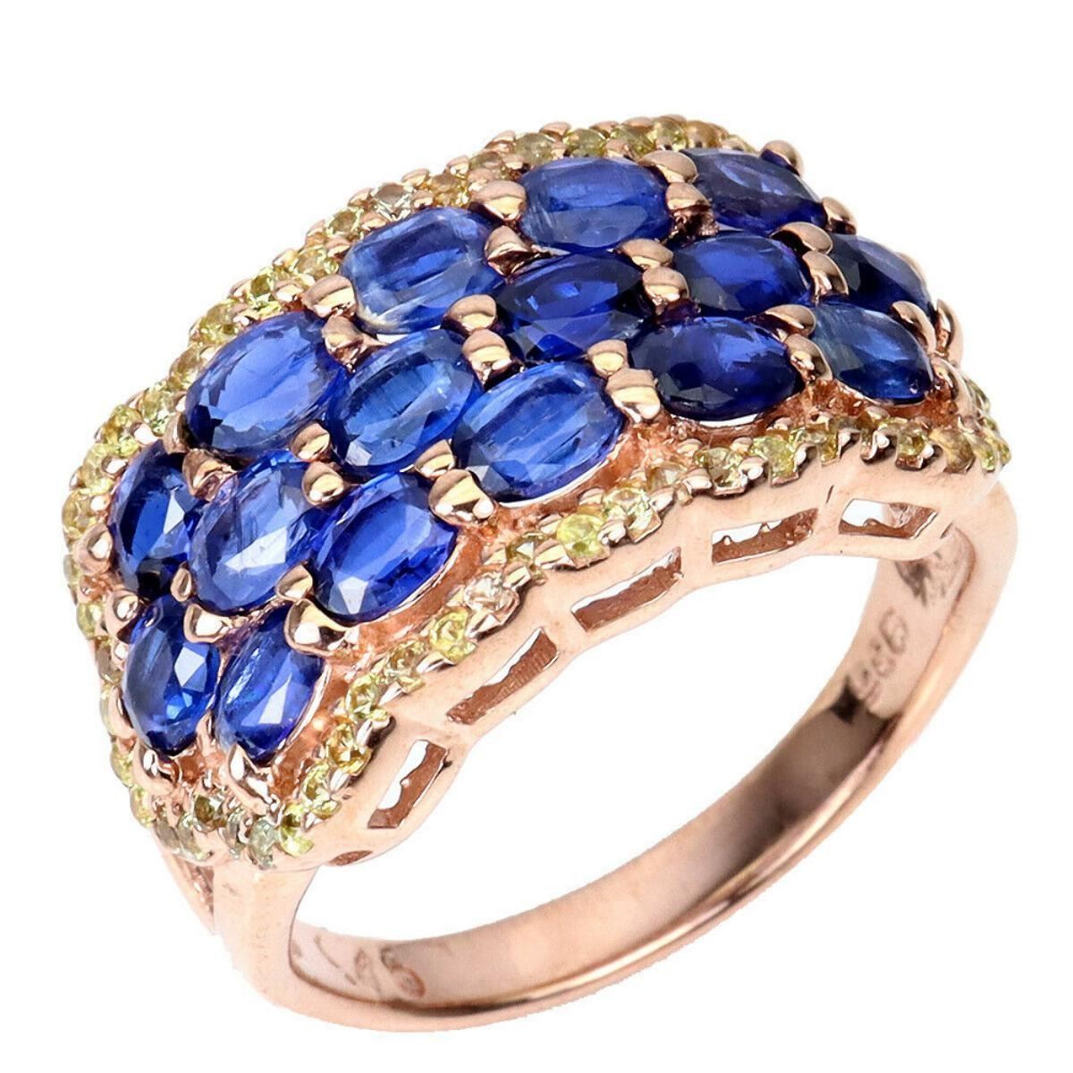 925 STERLING SILVER;PLATE-14K ROSE GOLD;RING SIZE-8.5(RESIZABLE);MAIN STONE-KYANITE;OTHER GEMS-SAPPHIRE;TOTAL WEIGHT-5.26 GRAM (TOTAL WEIGHT OF SILVER + STONE);DIMENSION-* STONE 1.0 TO 4.0 X 3.0 MM. * RING SIZE 8.5 * FACE RING 22.0 X 13.0 MM.;MAIN STONE SHAPE-OVAL CUT;MAIN STONE COLOR- CORNFLOWER BLUE;CLARITY/GRADE-IF TO VVS;TREATMENT-UNHEATED;ORIGIN-NEPAL;HARDNESS-5;