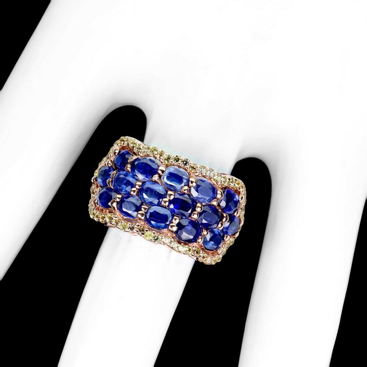925 STERLING SILVER;PLATE-14K ROSE GOLD;RING SIZE-8.5(RESIZABLE);MAIN STONE-KYANITE;OTHER GEMS-SAPPHIRE;TOTAL WEIGHT-5.26 GRAM (TOTAL WEIGHT OF SILVER + STONE);DIMENSION-* STONE 1.0 TO 4.0 X 3.0 MM. * RING SIZE 8.5 * FACE RING 22.0 X 13.0 MM.;MAIN STONE SHAPE-OVAL CUT;MAIN STONE COLOR- CORNFLOWER BLUE;CLARITY/GRADE-IF TO VVS;TREATMENT-UNHEATED;ORIGIN-NEPAL;HARDNESS-5;