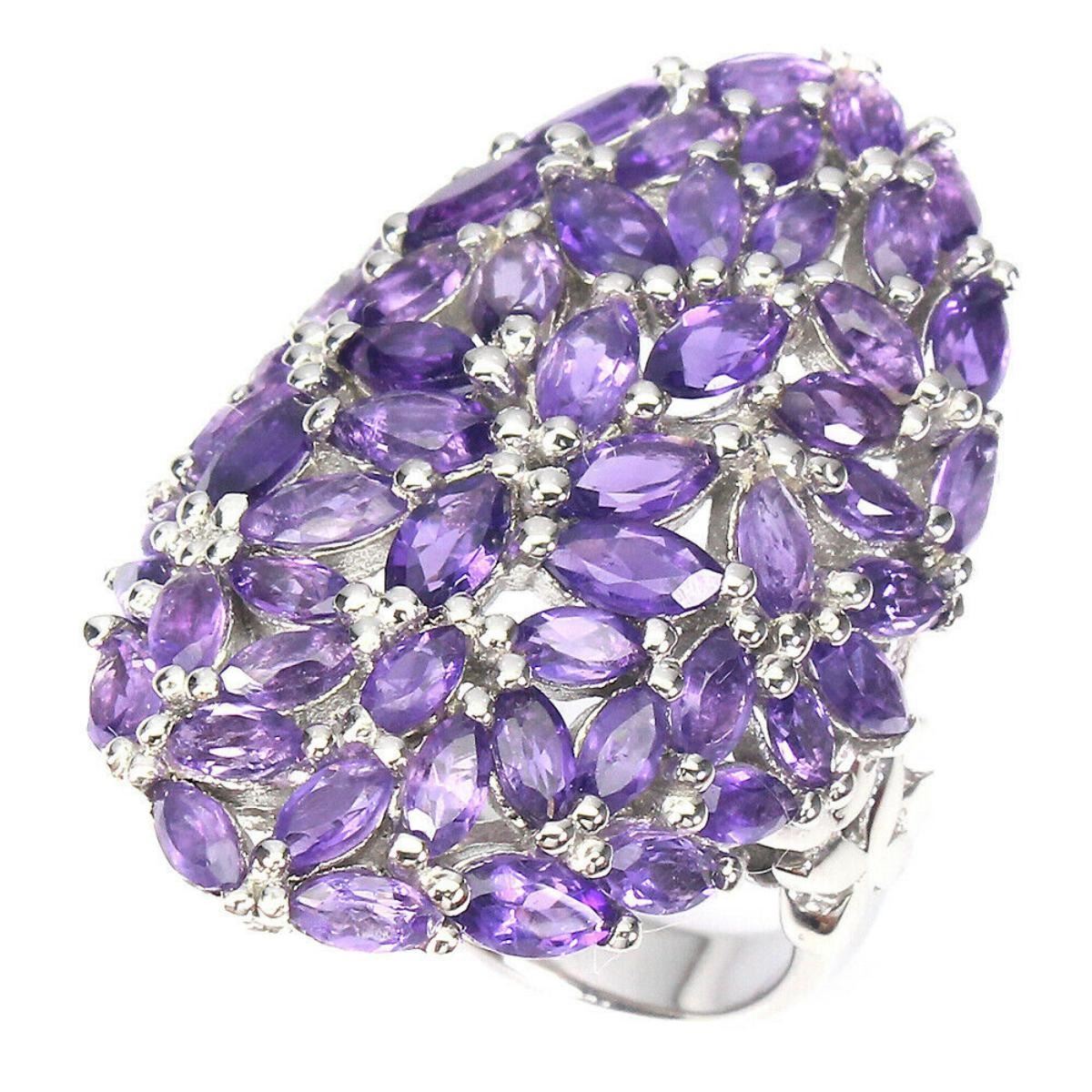 925 STERLING SILVER;PLATE-14K WHITE GOLD;RING SIZE/resizeable-7.5;MAIN STONE-AMETHYST;TOTAL WEIGHT-10.72 GRAM (TOTAL WEIGHT OF SILVER + STONE)DIMENSION-* STONE 4.0 X 2.0 TO 5.0 X 2.5 MM. * RING SIZE 7.5 * FACE RING -33.0 X 22.0 MM.;MAIN STONE SHAPE-MARQUISE CUT;MAIN STONE COLOR-TOP RICH PURPLE;TREATMENT-UNHEATED;ORIGIN-URUGUAY;HARDNESS-7;