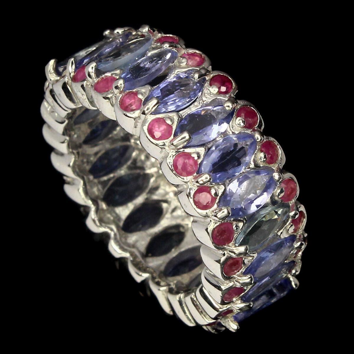 925 STERLING SILVER;PLATE-14K WHITE GOLD;RING SIZE-7.5;MAIN STONE-TANZANITE;OTHER GEMS-RUBY;TOTAL WEIGHT-50.34 CT (TOTAL WEIGHT OF SILVER + STONE)DIMENSION* STONE 2.0 TO 6.0 X 3.0 MM. * RING SIZE 7.5 * FACE RING 25.0 X 9.0 MM.;MAIN STONE SHAPE-MARQUISE CUT;MAIN STONE COLOR-TOP RICH BLUE VIOLET;CLARITY/GRADE-IF TO VVS;TREATMENT-UNHEATED;ORIGINTANZANIA - AFRICA;HARDNESS-7.0 - 9.0