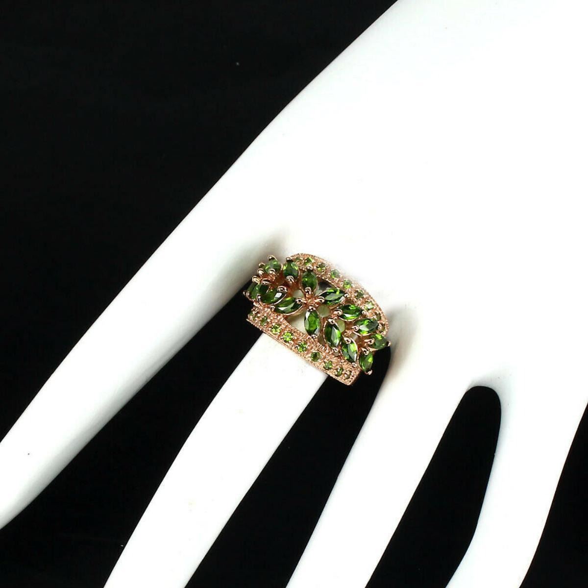 925 STERLING SILVER;PLATE....14K ROSE GOLD;RING SIZE-8(resizeable)MAIN STONE-CHROME DIOPSIDE.TOTAL WEIGHT-7.93 CT (TOTAL WEIGHT OF SILVER + STONE)DIMENSION* STONE 1.5 TO 5.0 X 2.5 MM. * RING SIZE 8.0 * FACE RING 25.0 X 16.0 MM.;MAIN STONE SHAPE-MARQUISE CUT;MAIN STONE COLOR-TOP RICH GREEN;CLARITY/GRADE-IF TO VVS;TREATMENT-UNHEATED;ORIGIN-RUSSIA;HARDNESS-5.0 - 5.5;