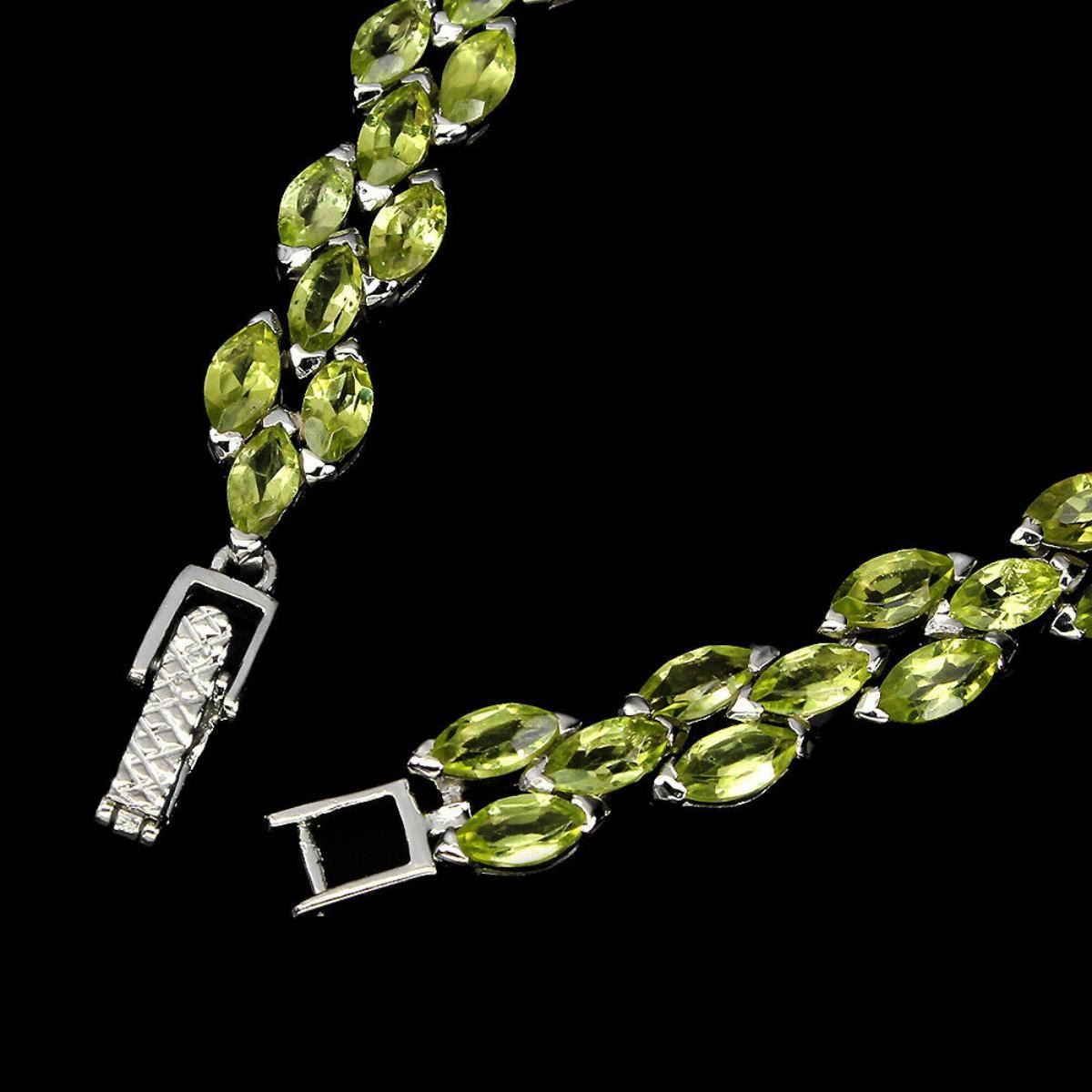 925 STERLING SILVER;PLATE-14K WHITE GOLD;LENGTH- (INCHES)7;MAIN STONE-PERIDOT;TOTAL WEIGHT-14.42 GRAM (TOTAL WEIGHT OF SILVER + STONE)DIMENSION-* STONE 6.0 X 3.0 MM. * FACE BRACELET 160.0 X 7.0 MM.;MAIN STONE SHAPE-MARQUISE CUT;MAIN STONE COLOR-TOP RICH GREEN;CLARITY/GRADE-IF TO VVS;TREATMENT-UNHEATED;ORIGIN-PAKISTAN;HARDNESS-6;