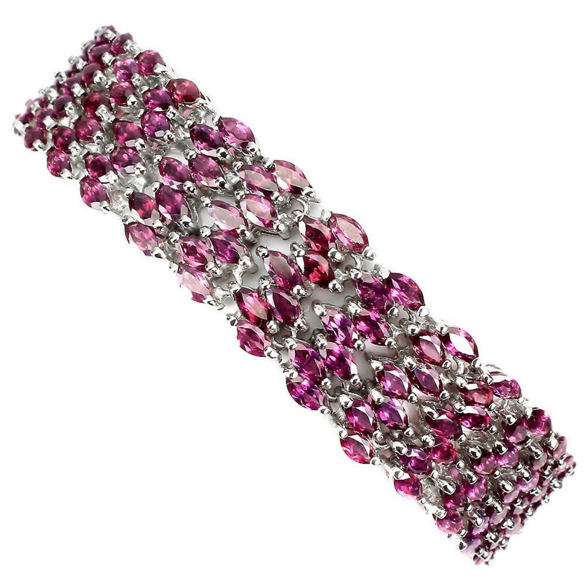 925 STERLING SILVER;PLATE-14K WHITE GOLD;LENGTH (INCHES)8;MAIN STONE-RHODOLITE GARNET;TOTAL WEIGHT-38.49 GRAM (TOTAL WEIGHT OF SILVER + STONE)DIMENSION-* STONE 5.0 X 2.5 MM.;* LENGTH 8.0 INCHES.* FACE BRACELET 180.0 X 16.0 MM.;MAIN STONE SHAPE-MARQUISE CUT;MAIN STONE COLOR- PINK RASPBERRY;CLARITY/GRADE-IF TO VVS;TREATMENT-UNHEATED;ORIGIN-AFRICA;HARDNESS-7.0 - 7.5;