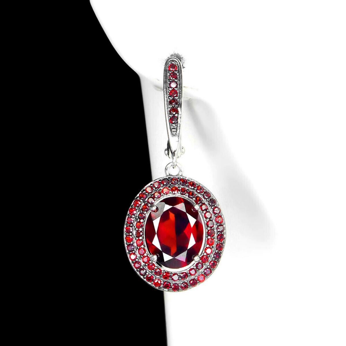 925 STERLING SILVER;PLATE-2-TONE BLACK RHODIUM & WHITE 14K GOLD;MAIN STONE-MOZAMBIQUE GARNET;TOTAL WEIGHT-6.03 GRAM (TOTAL WEIGHT OF SILVER + STONE);DIMENSION-* STONE 1.0 TO 10.0 X 8.0 MM.* FACE EARRINGS 33.0 X 14.0 MM.;MAIN STONE SHAPE-OVAL;MAIN STONE COLOR-REDDISH;CLARITY/GRADE-IF;TREATMENT-UNHEATED;ORIGIN-AFRICA;
