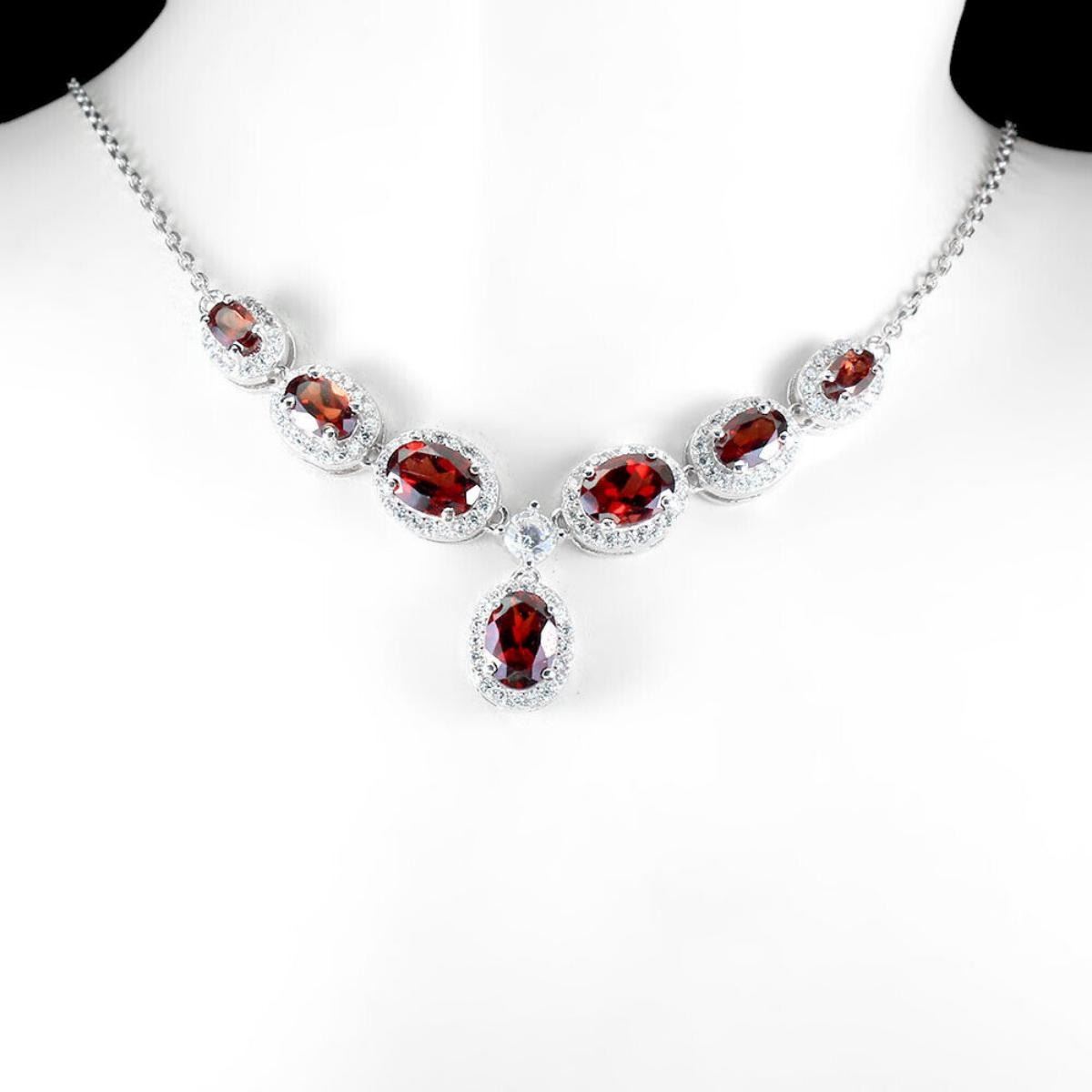 925 STERLING SILVER;PLATE-14K WHITE GOLD;LENGTH (INCHES)17;MAIN STONE-MOZAMBIQUE GARNET;TOTAL WEIGHT-8.01 GRAM (TOTAL WEIGHT OF SILVER + STONE)DIMENSION-* STONE 5.0 X 3.0 TO 7.0 X 5.0 MM.;* TOTAL LENGTH- 17.0 INCHES.;* STONES PART LENGTH -60.0 X 17.0 MM.;MAIN STONE SHAPE-OVAL CUT;MAIN STONE COLOR- REDDISH;CLARITY/GRADE-IF;TREATMENT-UNHEATED;ORIGIN-AFRICA;HARDNESS-7.0 - 7.5;