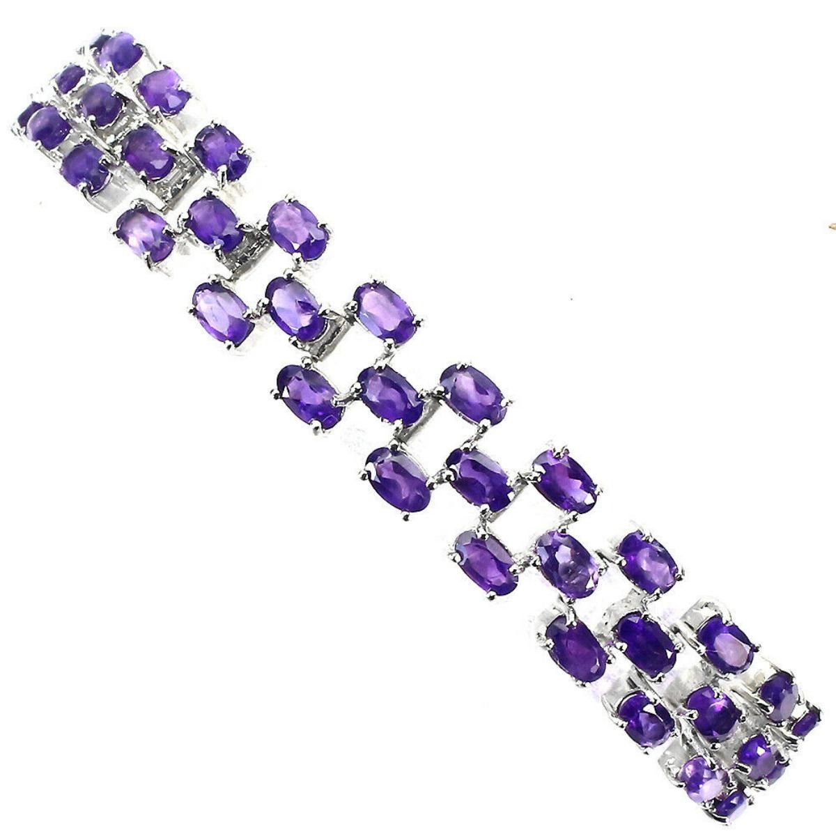 925 STERLING SILVER;PLATE-14K WHITE GOLD;LENGTH (INCHES)7.5;MAIN STONE-AMETHYST;TOTAL WEIGHT-19.28 GRAM (TOTAL WEIGHT OF SILVER + STONE)DIMENSION-* STONE 5.0 X 3.0 MM. * TOTAL LENGTH 7.5 INCHES. * FACE BRACELET- 170.0 X 11.0 MM.;MAIN STONE SHAPE-OVAL CUT;MAIN STONE COLOR- RICH PURPLE;CLARITY/GRADE-IF TO VVS;TREATMENT-UNHEATED;ORIGIN-URUGUAY;HARDNESS-7;
