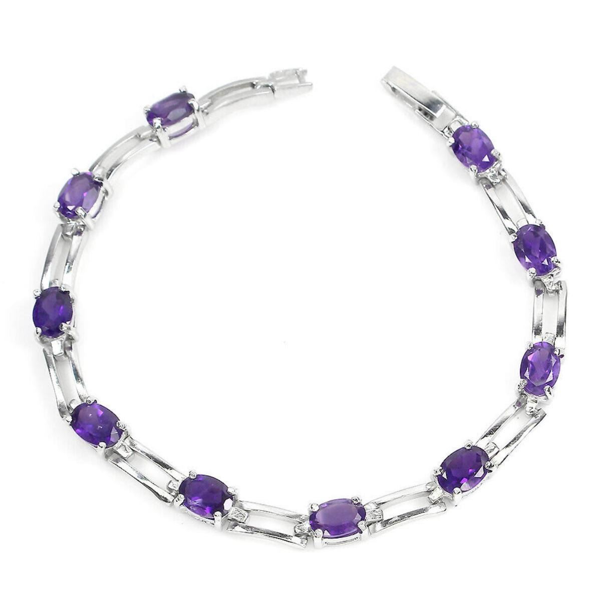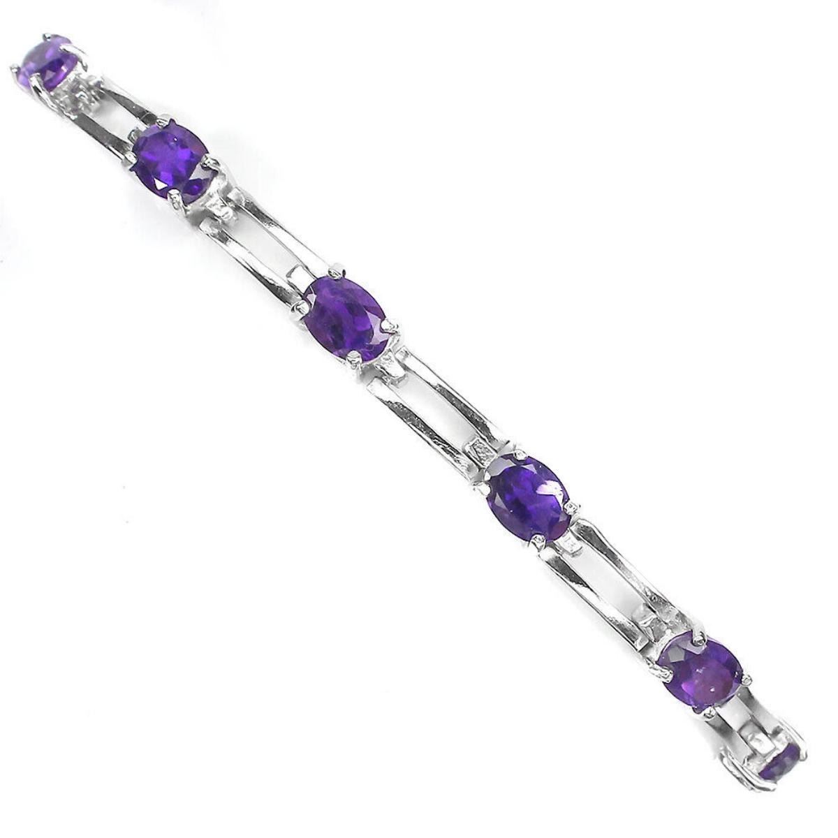 925 STERLING SILVER;PLATE-14K WHITE GOLD;LENGTH (INCHES)7.5;MAIN STONE-AMETHYST;TOTAL WEIGHT-12.46 GRAM (TOTAL WEIGHT OF SILVER + STONE)DIMENSION-* STONE 7.0 X 5.0 MM. * LENGTH 7.5 INCHES.* FACE BRACELET 160.0 X 5.0 MM.;MAIN STONE SHAPE-OVAL CUT;MAIN STONE COLOR- RICH PURPLE;CLARITY/GRADE-IF TO VVS;TREATMENT-UNHEATED;ORIGIN-BRAZIL;HARDNESS-7