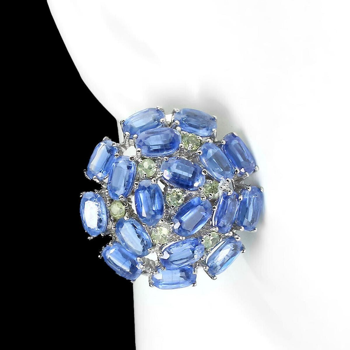 925 STERLING SILVERPLATE-14K WHITE GOLDMAIN STONE-KYANITE;OTHER GEMS-PERIDOT;TOTAL WEIGHT-6.64 GRAM (TOTAL WEIGHT OF SILVER + STONE)DIMENSION-* STONE 2.0 TO 5.0 X 3.0 MM.;* FACE EARRINGS- 21.0 X 21.0 MM.;MAIN STONE SHAPE-OVAL CUT;MAIN STONE COLOR-CORNFLOWER BLUE;CLARITY/GRADE-IF TO VVS;TREATMENT-UNHEATED;ORIGIN-NEPAL;HARDNESS-5.0 - 7.0;