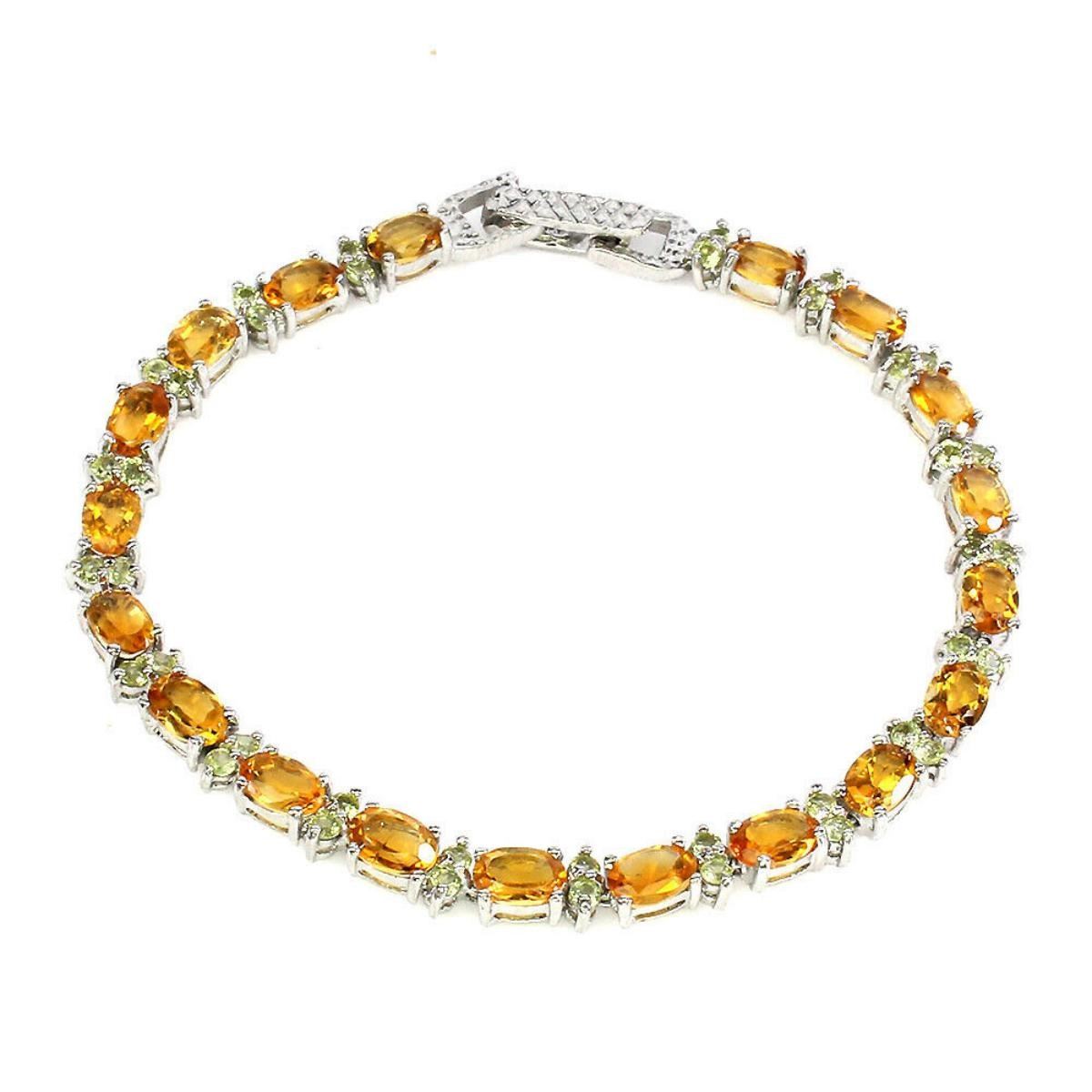 925 STERLING SILVER;PLATE-14K WHITE GOLD;LENGTH (INCHES)7;MAIN STONE-CITRINE;OTHER GEMS-PERIDOT;TOTAL WEIGHT-10.13 GRAM (TOTAL WEIGHT OF SILVER + STONE)DIMENSION-* STONE 2.0 TO 6.0 X 4.0 MM. * TOTAL LENGTH 7.0 INCHES. * FACE BRACELET 160.0 X 5.0 MM.;MAIN STONE SHAPE-OVAL CUT;MAIN STONE COLOR-TOP RICH YELLOW;CLARITY/GRADE-IF TO VV;SLUSTER-PRECIOUS;TREATMENT-UNHEATED;ORIGIN-BRAZIL;HARDNESS-7;
