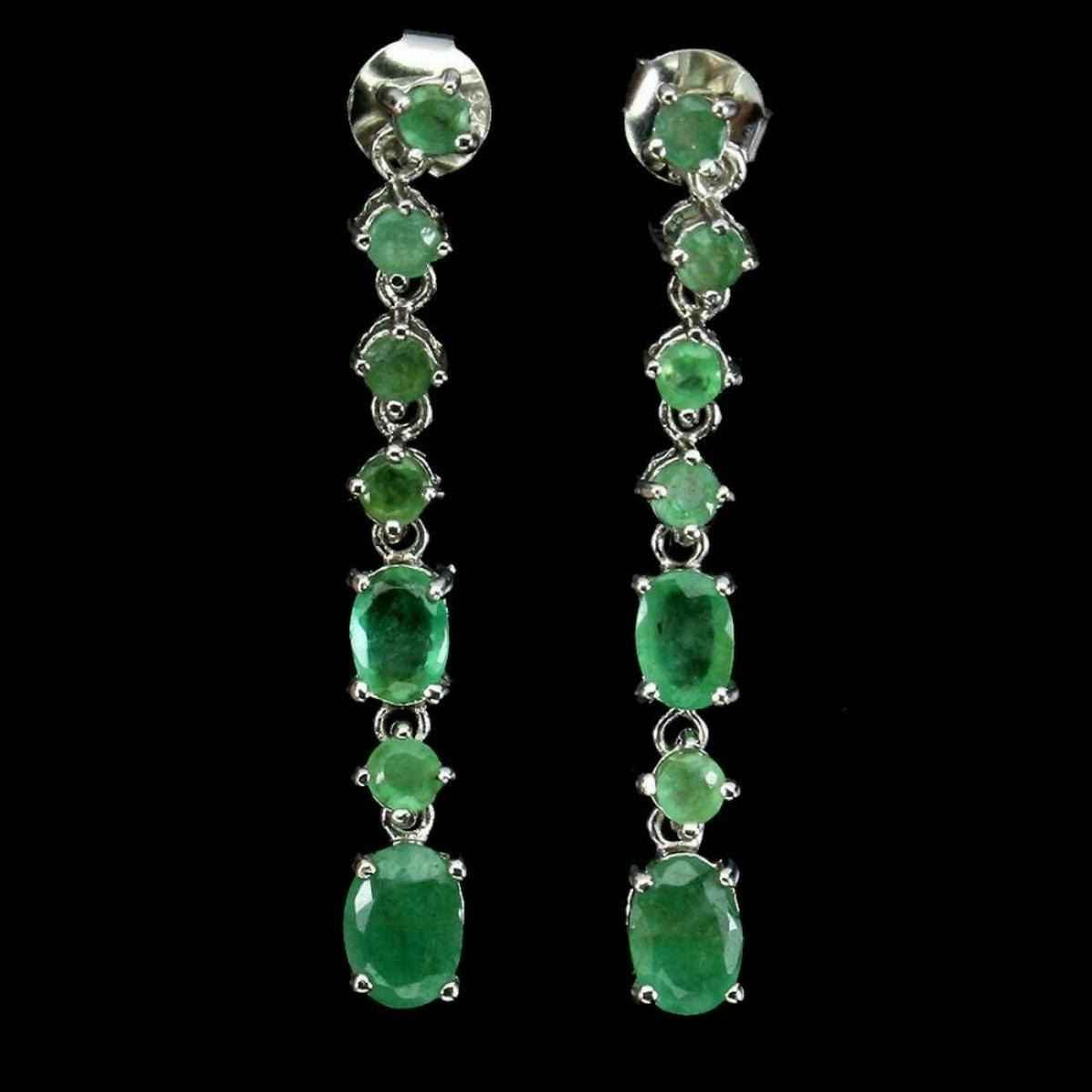 925 STERLING SILVER;PLATE-14K WHITE GOLD;MAIN STONE-EMERALD;TOTAL WEIGHT-4.41 GRAM (TOTAL WEIGHT OF SILVER + STONE)DIMENSION-* STONE 3.0 TO 7.0 X 5.0 MM. * FACE EARRINGS 40.0 X 5.0 MM.MAIN STONE SHAPE-OVAL CUT;MAIN STONE COLOR-TOP RICH GREEN;CLARITY/GRADE-TRANSPARENT;LUSTER-GORGEOUS;TREATMENT-UNHEATED;ORIGIN-BRAZIL;HARDNESS-7.5 - 8.0;