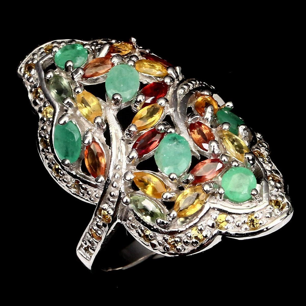 925 STERLING SILVER;PLATE-14K WHITE GOLD;RING SIZE(resizeable)8;MAIN STONE-EMERALD;OTHER GEMS-SAPPHIRE;TOTAL WEIGHT-5.7 GRAM (TOTAL WEIGHT OF SILVER + STONE)DIMENSION* STONE 1.5 TO 4.0 X 3.0 MM. * RING SIZE 8.0 * FACE RING- 31.0 X 21.0 MM.;MAIN STONE SHAPE-OVAL CUT;MAIN STONE COLOR-TOP RICH GREEN;CLARITY/GRADE-TRANSPARENT;LUSTER-GORGEOUS;TREATMENT-UNHEATED;ORIGIN-BRAZIL;HARDNESS-7.5 - 9.0;