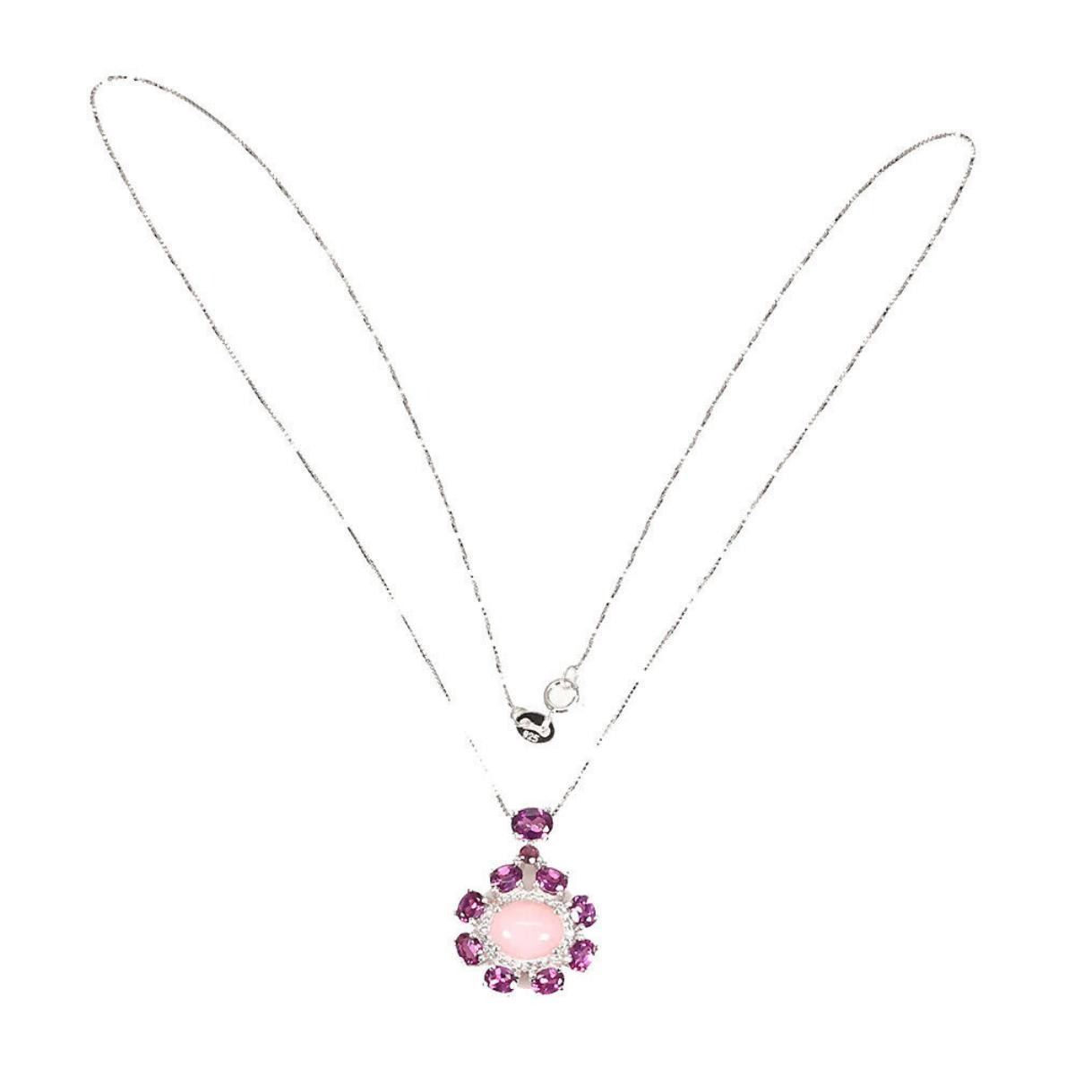925 STERLING SILVER;PLATE-14K WHITE GOLD;LENGTH (INCHES)18;MAIN STONE-PINK OPAL;OTHER GEMS-RHODOLITE GARNET, WHITE TOPAZ;TOTAL WEIGHT-3.78 GRAM (TOTAL WEIGHT OF SILVER + STONE)DIMENSION-* STONE 1.0 TO 9.0 X 7.0 MM.;* TOTAL LENGTH -18.0 INCHES.;* STONES PART LENGTH- 24.0 X 18.0 MM.;;MAIN STONE SHAPE-OVAL CABOCHONMAIN STONE COLOR-PINK;TREATMENT-UNHEATED;ORIGIN-ETHIOPIA;HARDNESS-5.5 - 6.5;