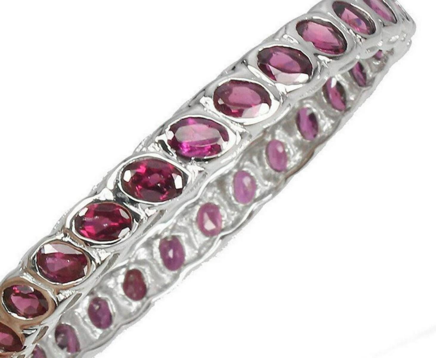 925 STERLING SILVER;PLATE-14K WHITE GOLD;-MAIN STONE-RHODOLITE GARNET;TOTAL WEIGHT-21.09 CT (TOTAL WEIGHT OF SILVER + STONE)DIMENSION-* STONE 6.0 X 4.0 MM. * DIAMETER 2.1 X 2.1 INCHES. * FACE BANGLE- 64.0 X 7.0 MM.;MAIN STONE SHAPE-OVAL CUT;;MAIN STONE COLOR-TOP RICH PINK RASPBERRY;CLARITY/GRADE-IF TO VVS;;TREATMENT-UNHEATED;ORIGIN-AFRICA;HARDNESS-7.0 - 7.5;