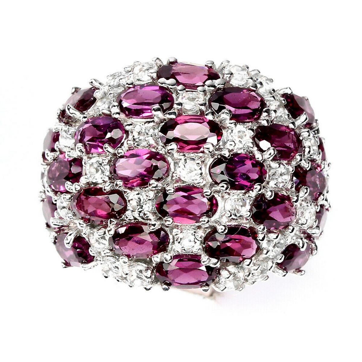 925 STERLING SILVER;PLATE-14K WHITE GOLD;RING SIZE-8(Resizeable)MAIN STONE-RHODOLITE GARNET;OTHER GEMS-WHITE TOPAZ;TOTAL WEIGHT-8.17 GRAM (TOTAL WEIGHT OF SILVER + STONE)DIMENSION* STONE 2.0 TO 5.0 X 3.0 MM. * FACE RING 25.0 X 19.0 MM.MAIN STONE SHAPE-OVAL CUT;MAIN STONE COLOR-TOP RICH PINK RASPBERRY;CLARITY/GRADE-IF TO VVS;LUSTER-GORGEOUS;TREATMENT-UNHEATED;ORIGIN-AFRICA;HARDNESS7.0 - 7.5