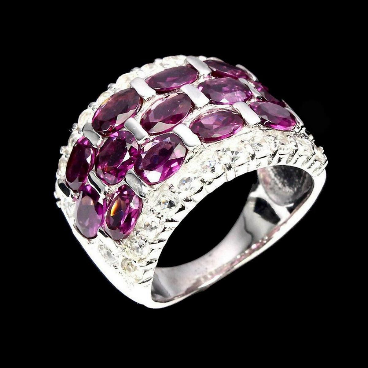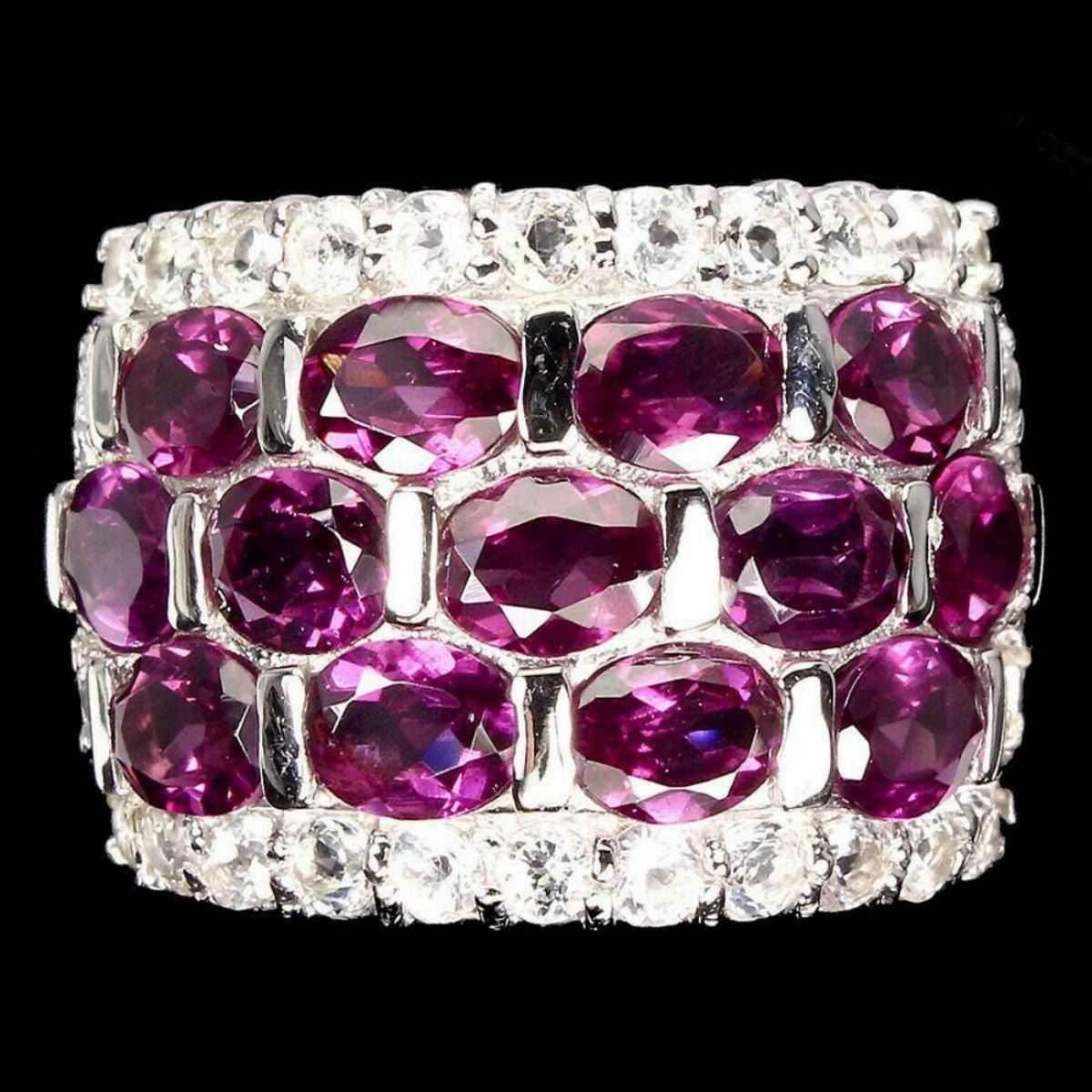 Ring;TYPE OF METAL-925 sterling silver;PLATE-14k White Gold;Ring size-(can be resized-7;MAIN STONE-Rhodolite GarnetOTHER GEMS-White TopazTOTAL weight9.34 gram (total weight of silver + stone)DIMENSION-* STONE 2.0 TO 4.0 X 3.0 MM. * RING SIZE 7.0 * FACE RING -23.0 X 17.0 MM.;Oval Cut;MAIN STONE COLOR-Top Rich Pink Raspberry;CLARITY/GRADE-If To Vvs;LUSTERGorgeous;TREATMENT-Unheated;ORIGIN-Africa;HARDNESS-7;