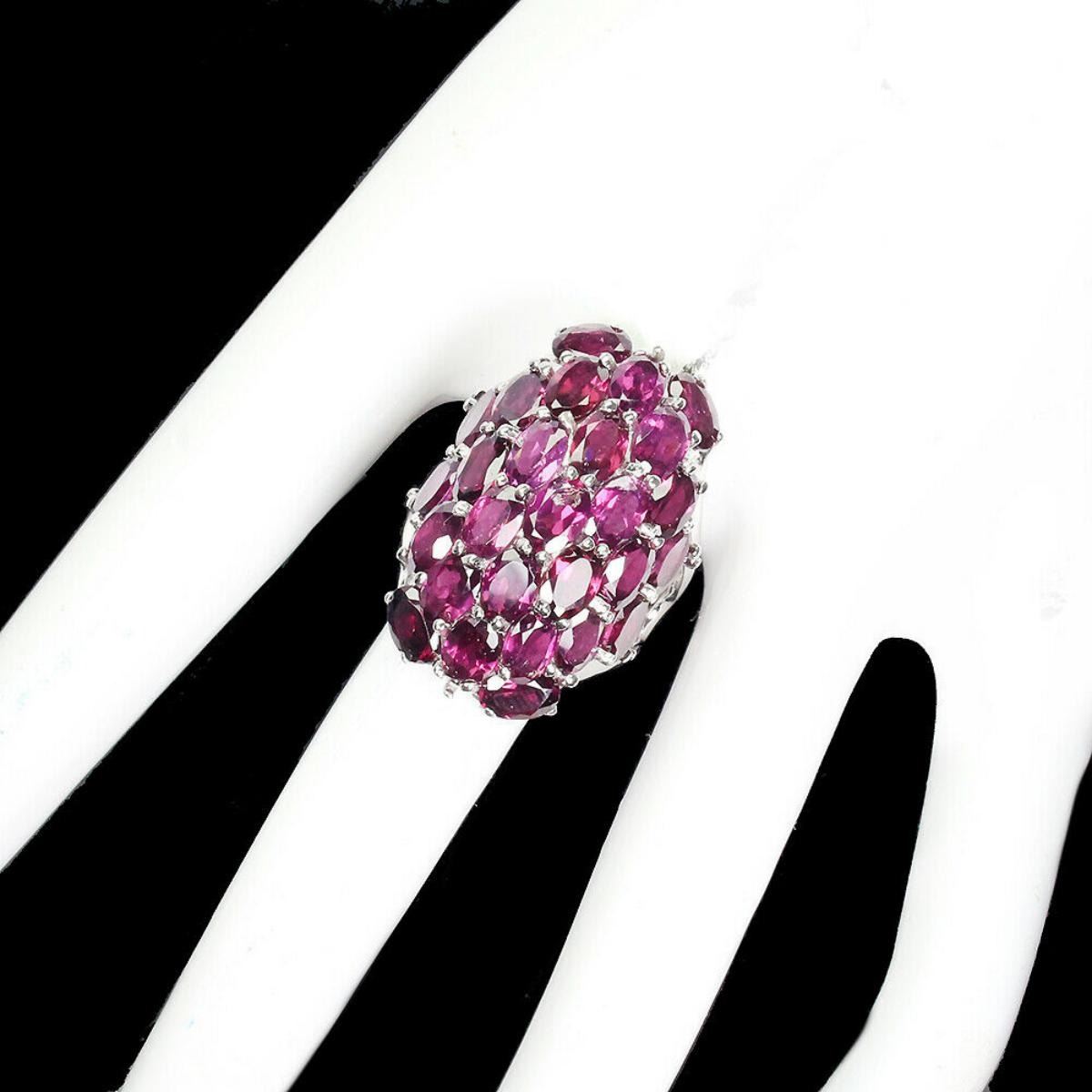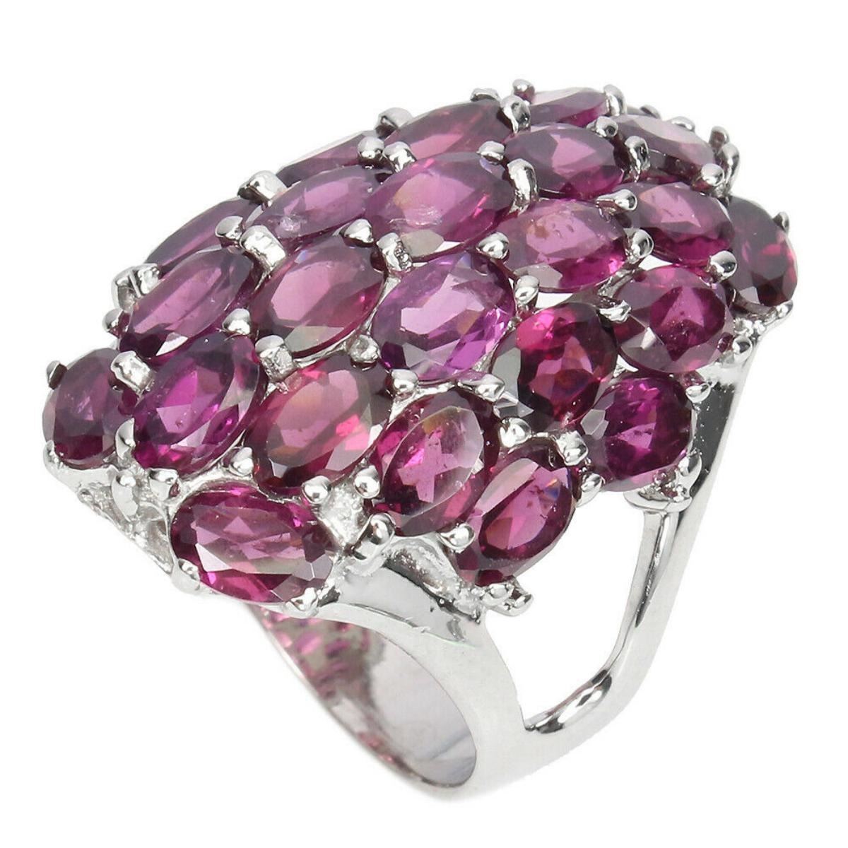 925 STERLING SILVER;PLATE-14K WHITE GOLD;RING SIZE/resizeable-8;MAIN STONE-RHODOLITE GARNET;TOTAL WEIGHT-12.23 GRAM (TOTAL WEIGHT OF SILVER + STONE)DIMENSION-* STONE 6.0 X 4.0 MM. * RING SIZE 8.0 * FACE RING 31.0 X 21.0 MM.;MAIN STONE SHAPE-OVAL CUT;MAIN STONE COLOR-TOP RICH PINK RASPBERRY;CLARITY/GRADE-IF TO VVS;TREATMENT-UNHEATED;ORIGIN-AFRICA;HARDNESS-7;