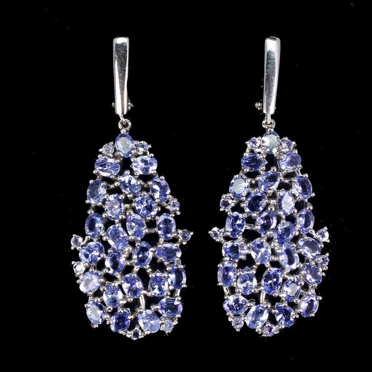 Earrings;TYPE OF METAL-925 sterling silver;PLATE-14k White Gold;MAIN STONE-Tanzanite;-TOTAL weight-10.96 gram (total weight of silver + stone)DIMENSION-* STONE 2.0 TO 4.0 X 3.0 MM. * FACE EARRINGS 48.0 X 20.0 MM.;MAIN STONE SHAPE-Oval Cut;MAIN STONE COLOR-Top Rich Blue Violet;CLARITY/GRADE-If To Vvs;TREATMENT-Unheated;ORIGINTanzania - Africa;HARDNESS-7.0 - 7.5;
