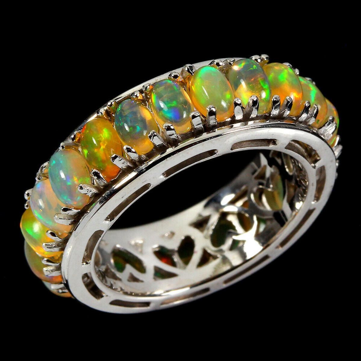 925 STERLING SILVER;PLATE-14K WHITE GOLD;RING SIZE-8;MAIN STONE-FIRE OPAL;TOTAL WEIGHT-7.5 GRAM (TOTAL WEIGHT OF SILVER + STONE)DIMENSION* STONE 5.0 X 3.0 MM. * RING SIZE 8.0 * FACE RING 27.0 X 8.0 MM.;MAIN STONE SHAPE-OVAL CABOCHON;MAIN STONE COLOR-RAINBOW FULL FLASH;TREATMENT-UNHEATED;ORIGIN-ETHIOPIA;HARDNESS-5.5 - 6.5;