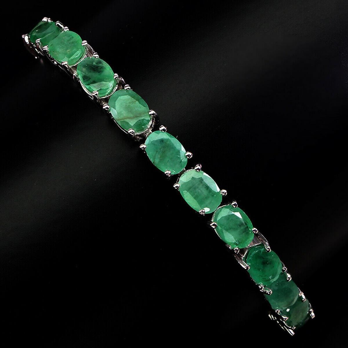 925 STERLING SILVER;PLATE-14K WHITE GOLD;LENGTH (INCHES)7.5;MAIN STONE-EMERALD;TOTAL WEIGHT-14.96 GRAM (TOTAL WEIGHT OF SILVER + STONE)DIMENSION* STONE 7.0 X 5.0 MM. * FACE BRACELET 170.0 X 5.0 MM.;MAIN STONE SHAPE-OVAL CUT;MAIN STONE COLOR-TOP RICH GREEN;TREATMENT-UNHEATED;ORIGIN-Zambia;HARDNESS-7.5 - 8.0;