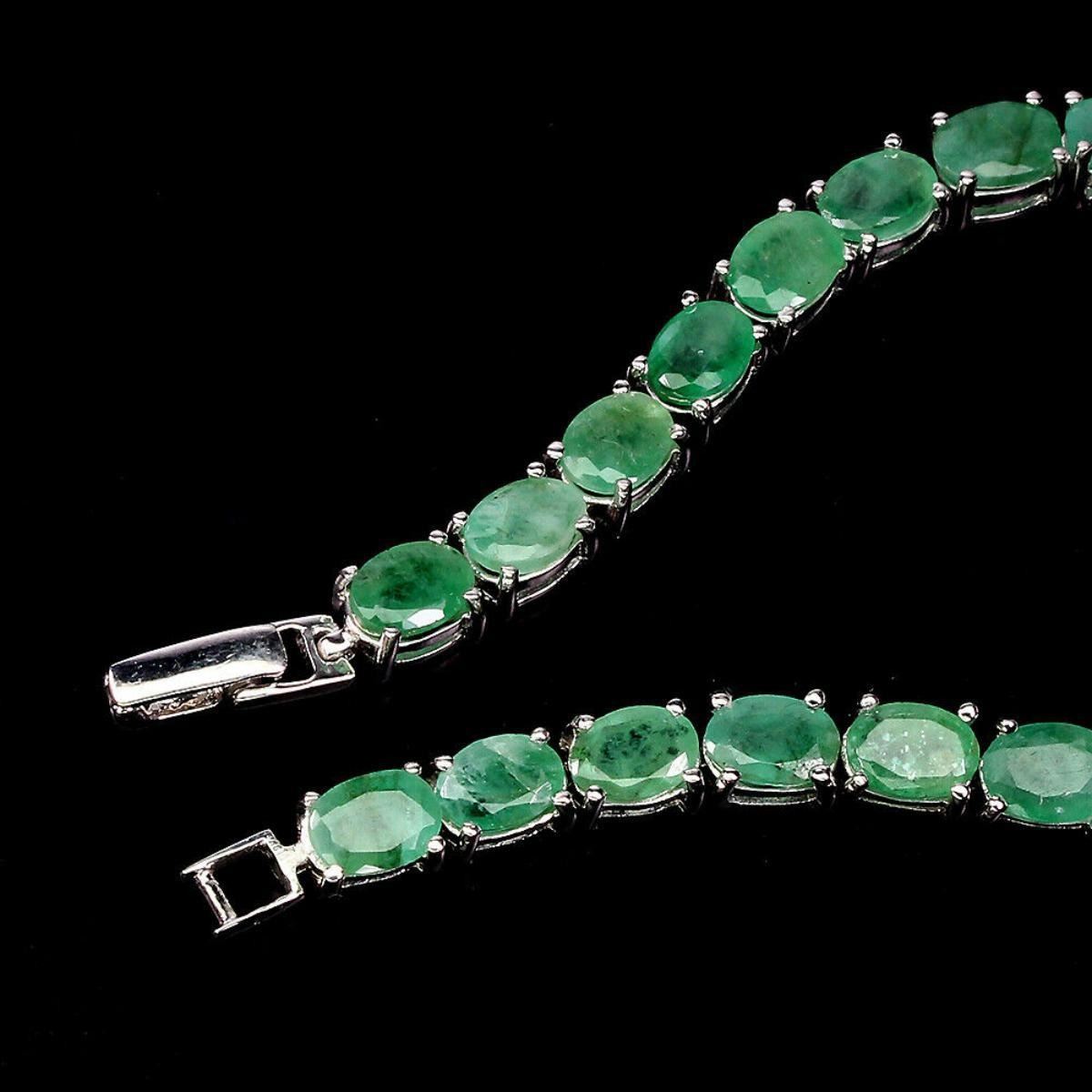 925 STERLING SILVER;PLATE-14K WHITE GOLD;LENGTH (INCHES)7.5;MAIN STONE-EMERALD;TOTAL WEIGHT-14.96 GRAM (TOTAL WEIGHT OF SILVER + STONE)DIMENSION* STONE 7.0 X 5.0 MM. * FACE BRACELET 170.0 X 5.0 MM.;MAIN STONE SHAPE-OVAL CUT;MAIN STONE COLOR-TOP RICH GREEN;TREATMENT-UNHEATED;ORIGIN-Zambia;HARDNESS-7.5 - 8.0;