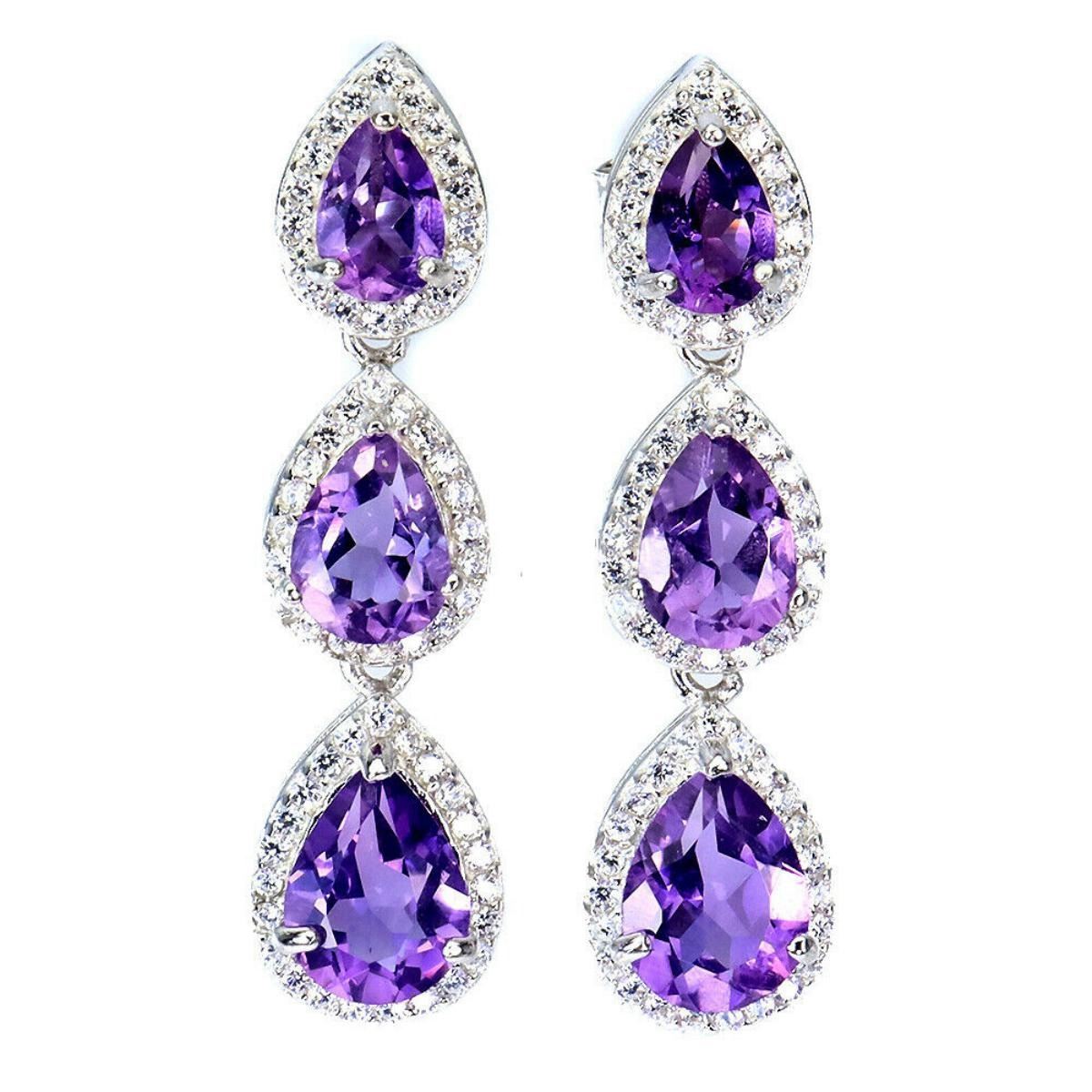 925 STERLING SILVER;PLATE-14K WHITE GOLD;MAIN STONE-AMETHYST;TOTAL WEIGHT-5.86 GRAM (TOTAL WEIGHT OF SILVER + STONE)DIMENSION-* STONE 6.0 X 4.0 TO 8.0 X 6.0 MM.;* FACE EARRINGS- 31.0 X 8.0 MM.;MAIN STONE SHAPE-PEAR CUT;MAIN STONE COLOR-PURPLE;CLARITY/GRADE-IF;TREATMENT-UNHEATED;ORIGIN-URUGUAY;HARDNESS-7;