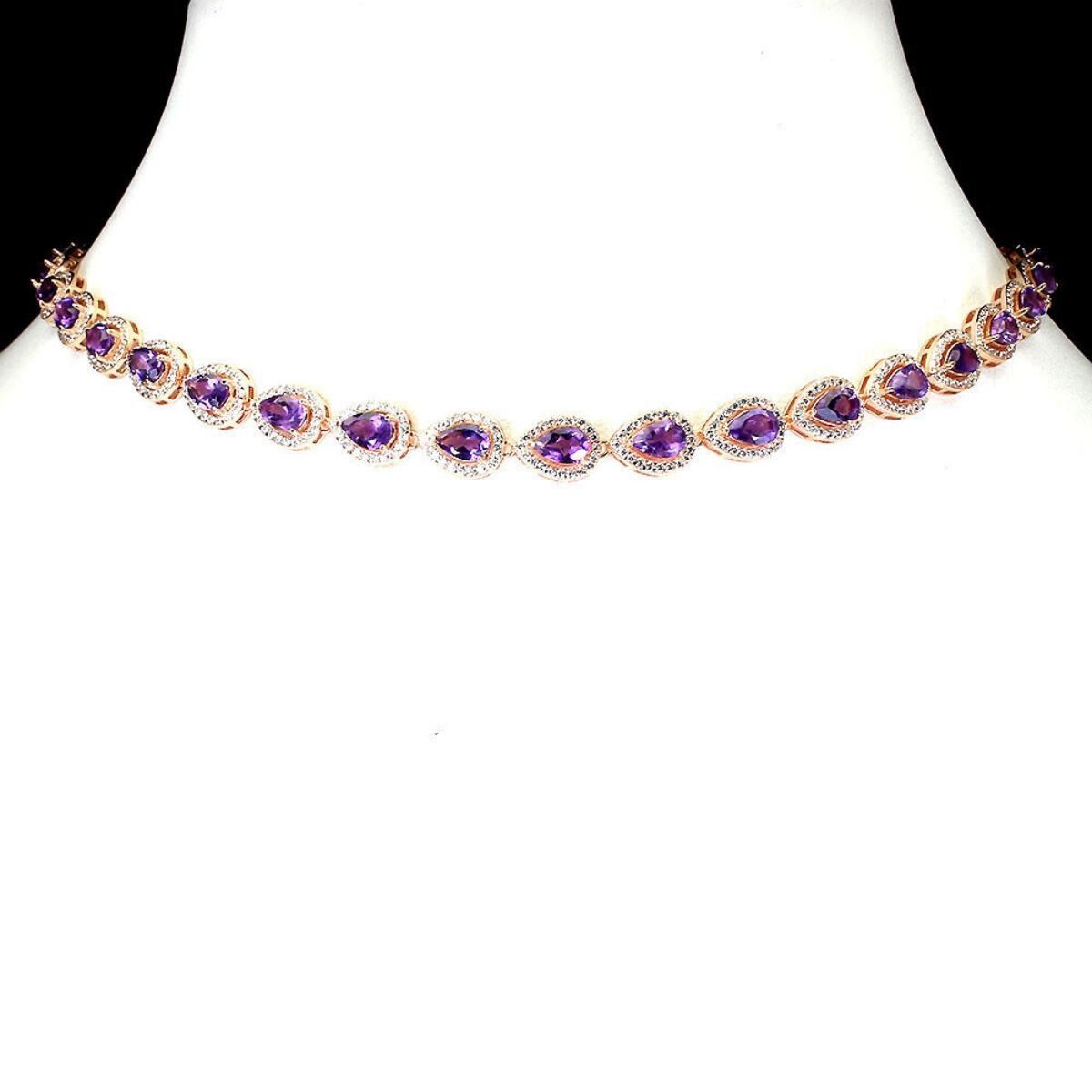 925 STERLING SILVER;PLATE-14K ROSE GOLD;LENGTH (INCHES)18;;;MAIN STONE-AMETHYST;TOTAL WEIGHT-30.43 GRAM (TOTAL WEIGHT OF SILVER + STONE)DIMENSION-* STONE 7.0 X 5.0 MM. * TOTAL LENGTH 18.0 INCHES. * STONES PART LENGTH- 440.0 X 9.0 MM.;MAIN STONE SHAPE-PEAR CUT;MAIN STONE COLOR-TOP RICH PURPLE;CLARITY/GRADE-IF TO VVS;TREATMENT-UNHEATED;ORIGIN-BRAZIL;;HARDNESS-7 ;