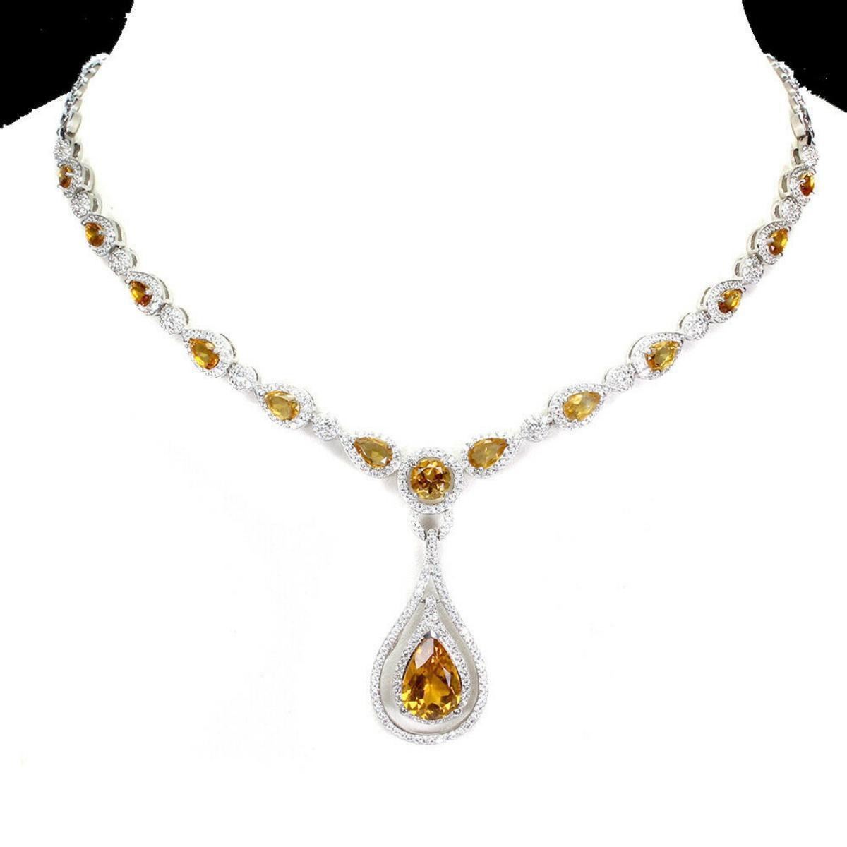 925 STERLING SILVER;PLATE-14K WHITE GOLD;LENGTH (INCHES)17;MAIN STONE-CITRINE;TOTAL WEIGHT-23.44 GRAM (TOTAL WEIGHT OF SILVER + STONE)DIMENSION* STONE 5.0 X 3.0 TO 13.0 X 9.0 MM. * CZ 1.0 TO 2.0 MM. * STONES PART LENGTH -175.0 X 44.0 MM.;MAIN STONE SHAPE-PEAR CUT;MAIN STONE COLOR-TOP RICH YELLOW;CLARITY/GRADEIF TO VVS;TREATMENT-UNHEATED;ORIGIN-BRAZIL;HARDNESS-7;