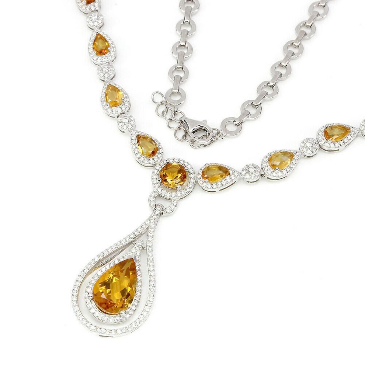 925 STERLING SILVER;PLATE-14K WHITE GOLD;LENGTH (INCHES)17;MAIN STONE-CITRINE;TOTAL WEIGHT-23.44 GRAM (TOTAL WEIGHT OF SILVER + STONE)DIMENSION* STONE 5.0 X 3.0 TO 13.0 X 9.0 MM. * CZ 1.0 TO 2.0 MM. * STONES PART LENGTH -175.0 X 44.0 MM.;MAIN STONE SHAPE-PEAR CUT;MAIN STONE COLOR-TOP RICH YELLOW;CLARITY/GRADEIF TO VVS;TREATMENT-UNHEATED;ORIGIN-BRAZIL;HARDNESS-7;
